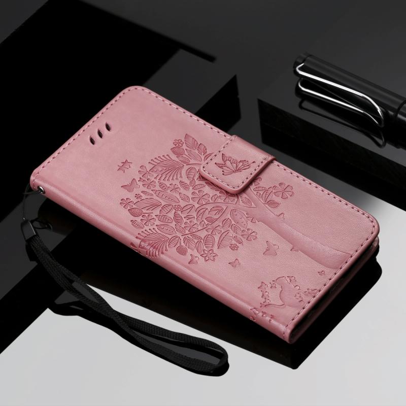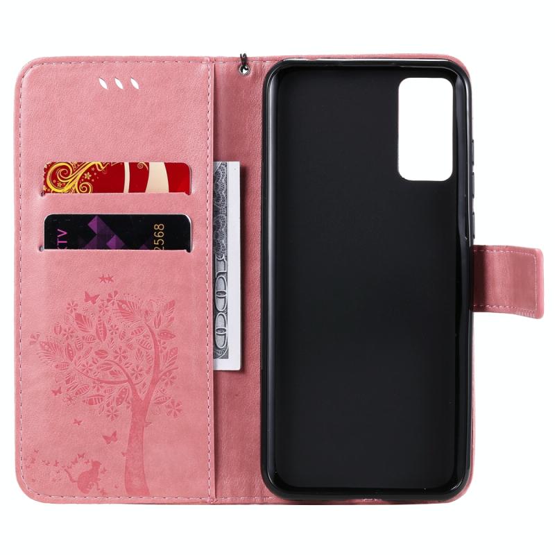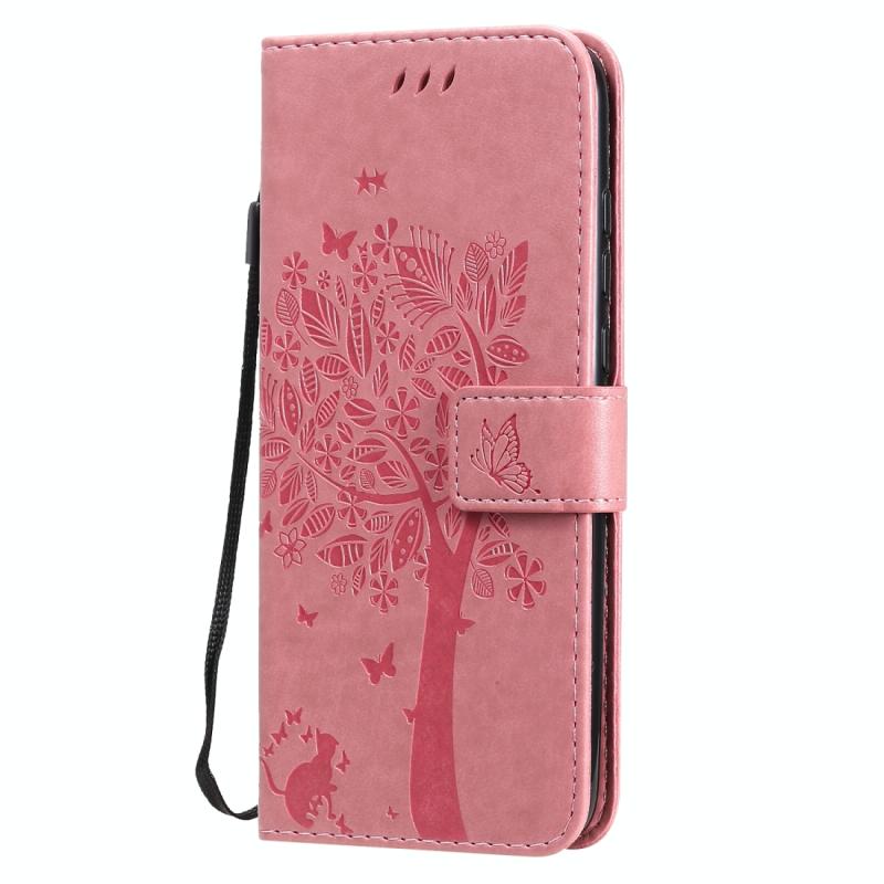 For Huawei Honor Play4T Pro Tree & Cat Embossed Pattern Horizontal Flip Leather Case with Holder & Card Slots & Wallet & Lanyard(Pink)