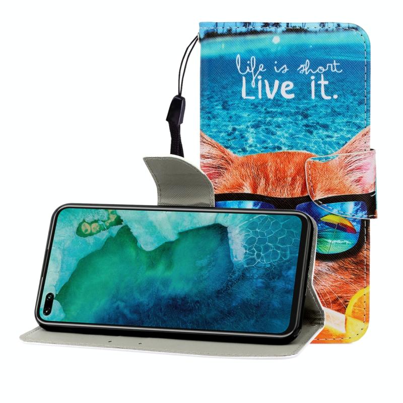 Θήκη δέρματος οριζόντιας αναδίπλωσης με σχέδιο και χρώματα για Huawei Honor V30 / V30 Pro με βάση στήριξης & υποδοχή κάρτας & πορτοφόλι (Κόκκινο)