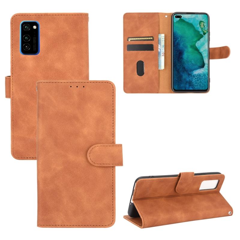 For Huawei Honor View30 / View30 Pro Solid Color Skin Feel Magnetic Buckle Horizontal Flip Calf Texture PU Leather Case with Holder & Card Slots & Wallet(Brown)