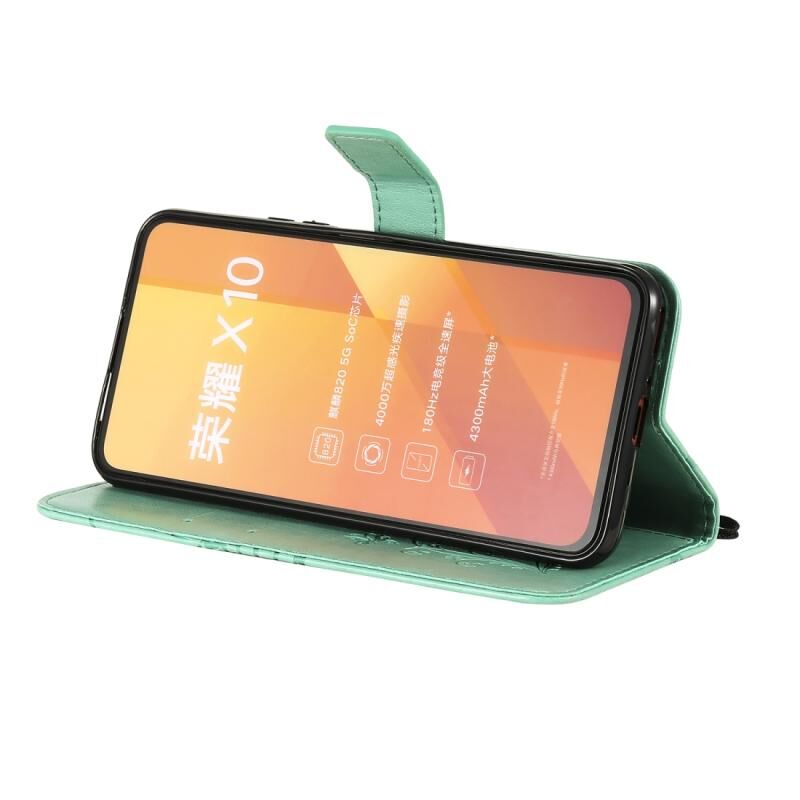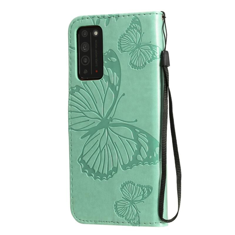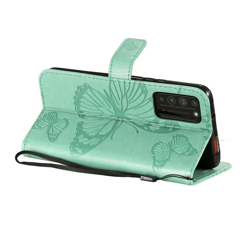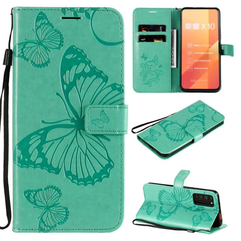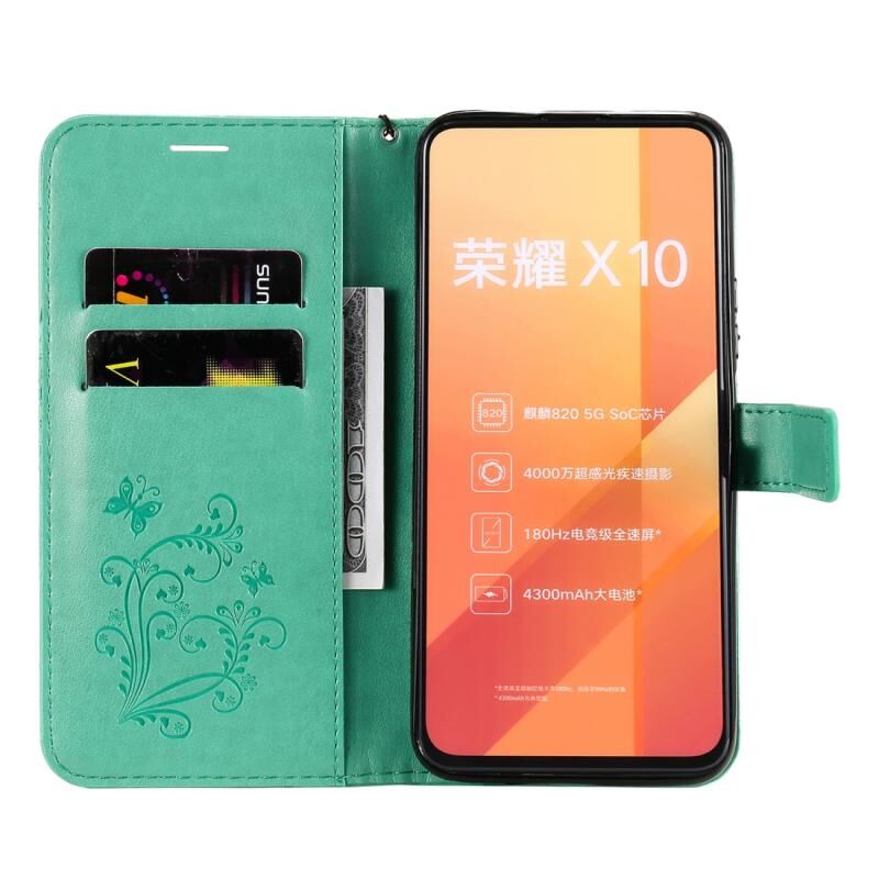 Θήκη Huawei Honor X10 3D Πεταλούδες Embossing, Οριζόντια, Δερμάτινη με Στήριξη, Θήκη Καρτών, Πορτοφόλι & Λουρί (Πράσινη)