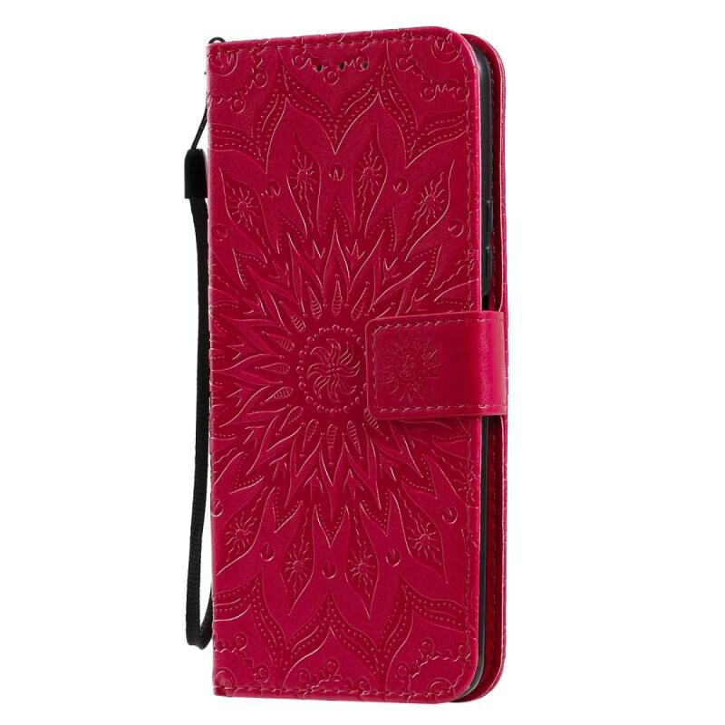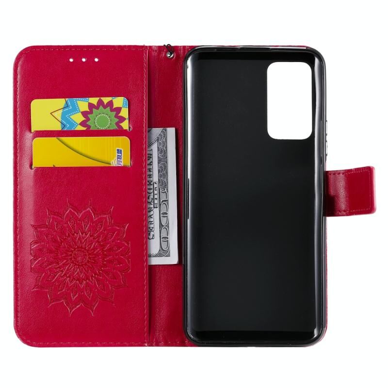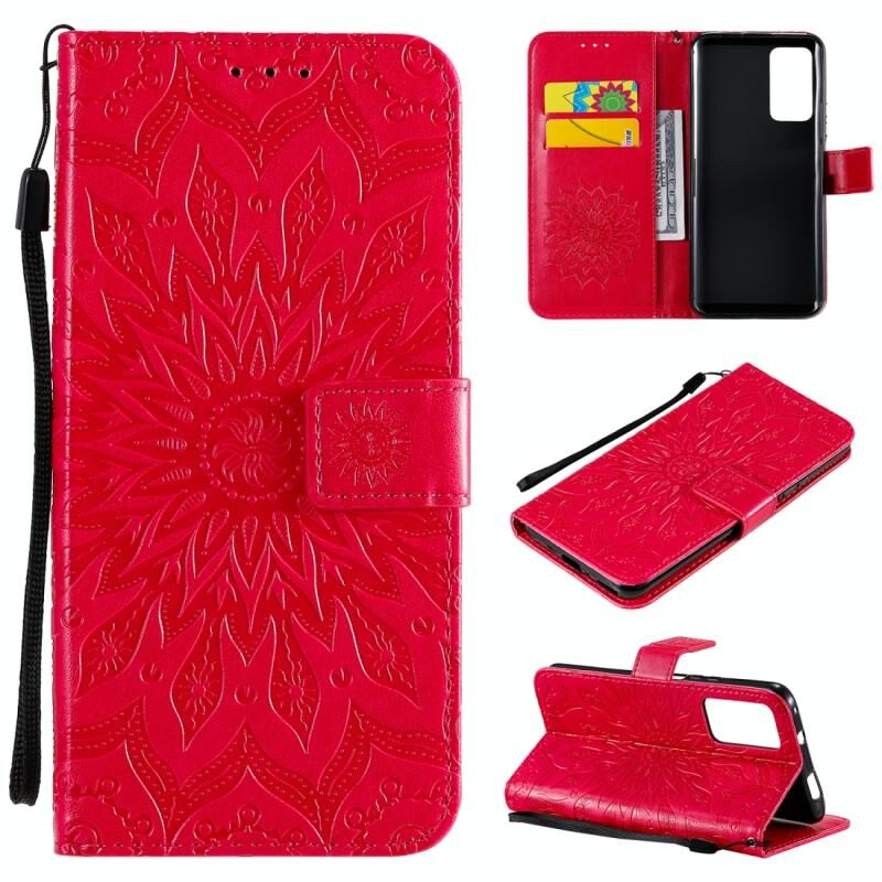 Για Huawei Honor X10 Πιεσμένη εκτύπωση ηλιοτρόπιο μοτίβο οριζόντια Flip PU δέρμα θήκη κάτοχος & υποδοχές καρτών & πορτοφόλι & Lanyard (κόκκινο)
