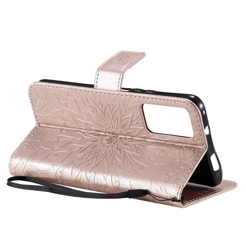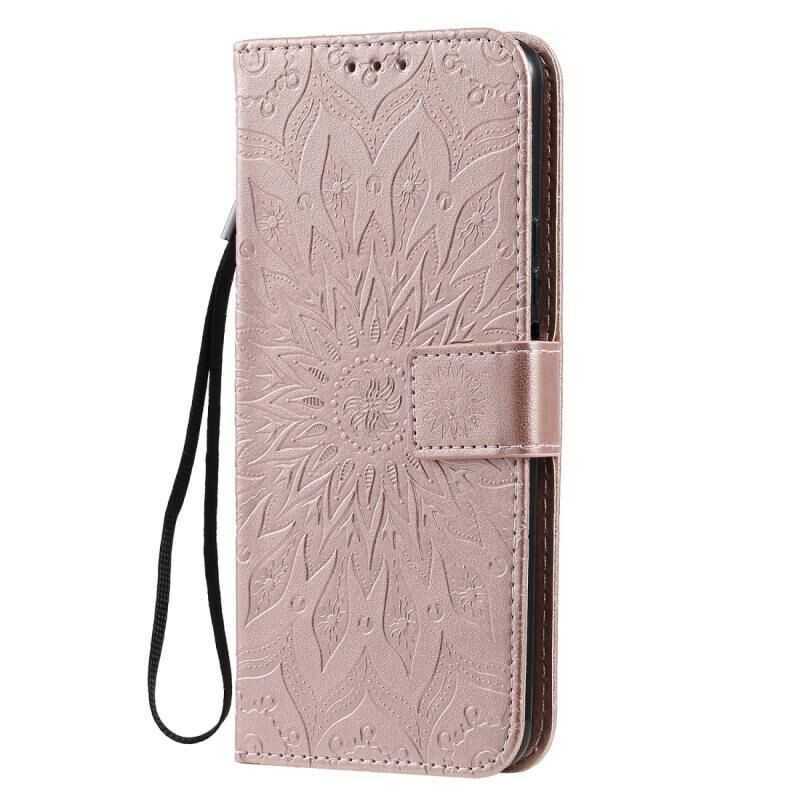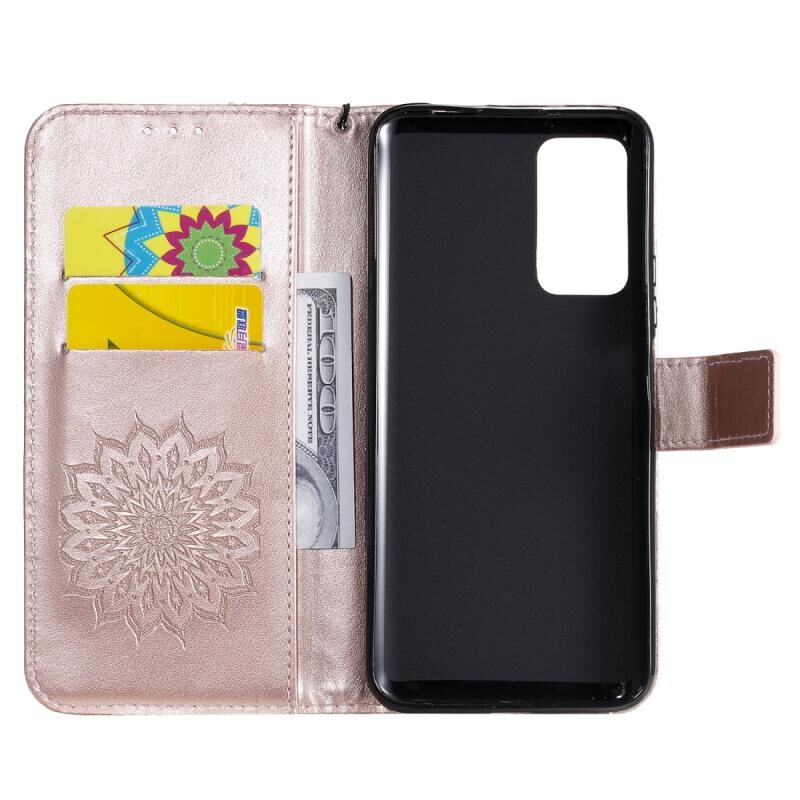 Για Huawei Honor X10 Πιεσμένη εκτύπωση ηλιοτρόπιο μοτίβο οριζόντια Flip PU δέρμα θήκη κάτοχος & υποδοχές καρτών & πορτοφόλι & Lanyard (Rose Gold)