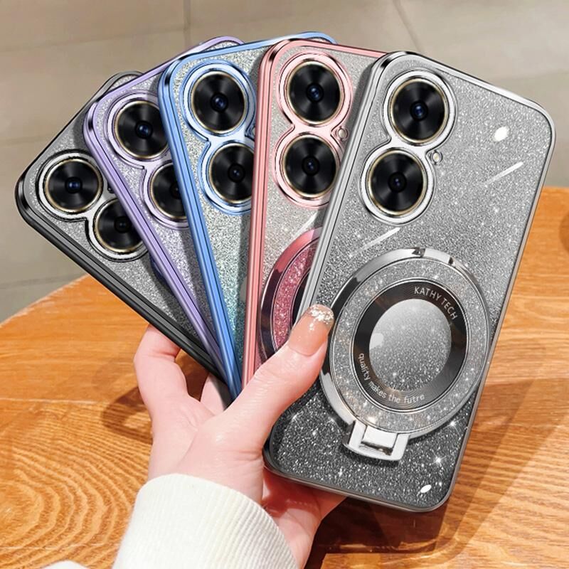 Για Huawei Maimang 20 επιμεταλλωμένο διαβάθμιση Glitter στρογγυλό κάτοχος TPU τηλέφωνο υπόθεση (ροζ)
