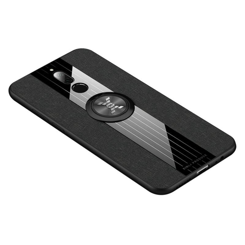 Για Huawei Maimang 6 XINLI ραφή ύφασμα Textue Shockproof TPU προστατευτική θήκη με δαχτυλίδι κάτοχος (μαύρο) (XINLI)