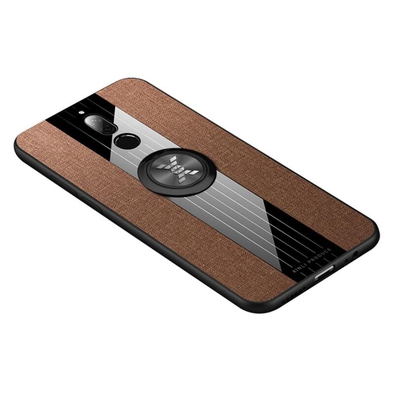 Για Huawei Maimang 6 XINLI ραφή ύφασμα Textue Shockproof TPU προστατευτική θήκη με δαχτυλίδι κάτοχος (καφέ) (Καφέ)