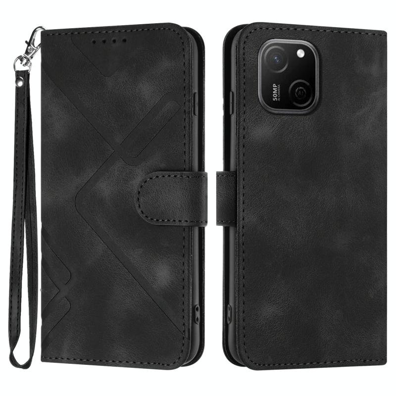 Θήκη τηλεφώνου Huawei Maimang A20 με υφή δέρματος και σχέδιο γραμμής (Μαύρο)