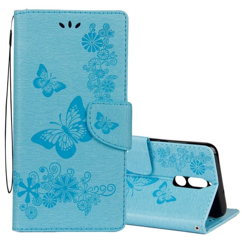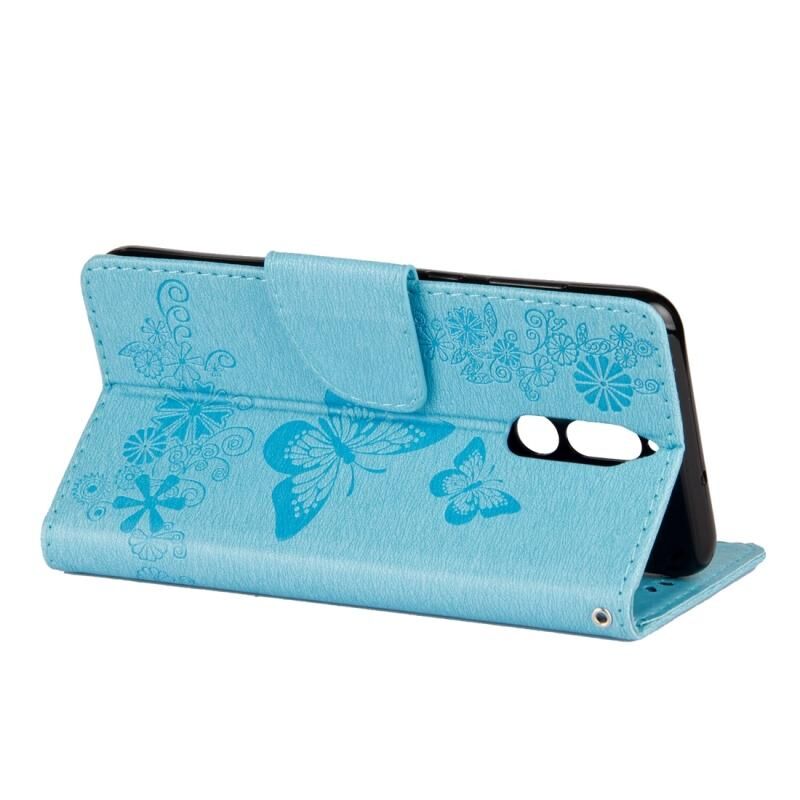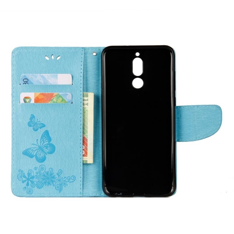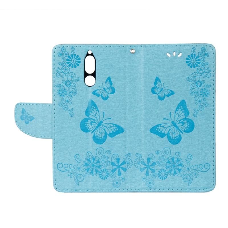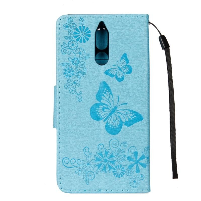 Θήκη Huawei Mate 10 Lite Vintage με ανάγλυφο floral σχέδιο πεταλούδας, οριζόντια, από δέρμα με θήκη για κάρτες, στήριξη, πορτοφόλι και κορδόνι (Γκρι)