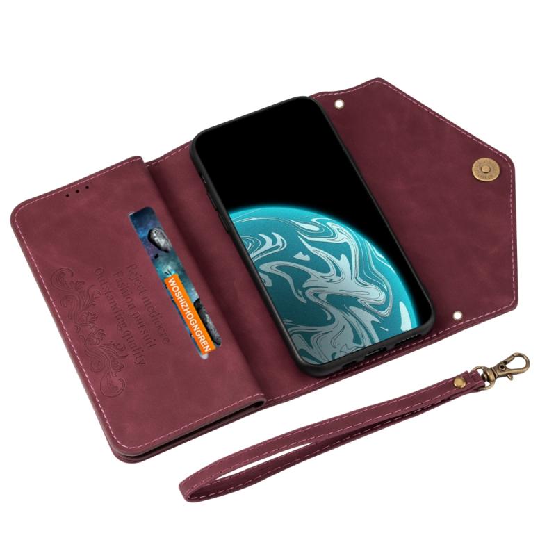 Θήκη Huawei Mate 10 Pro Δερμάτινη Flip με Λουρί & Κάρτες (Μπορντό)