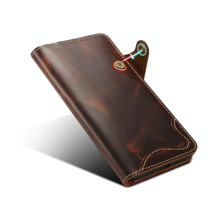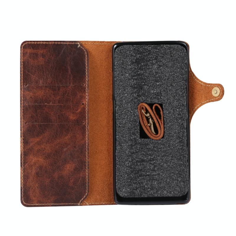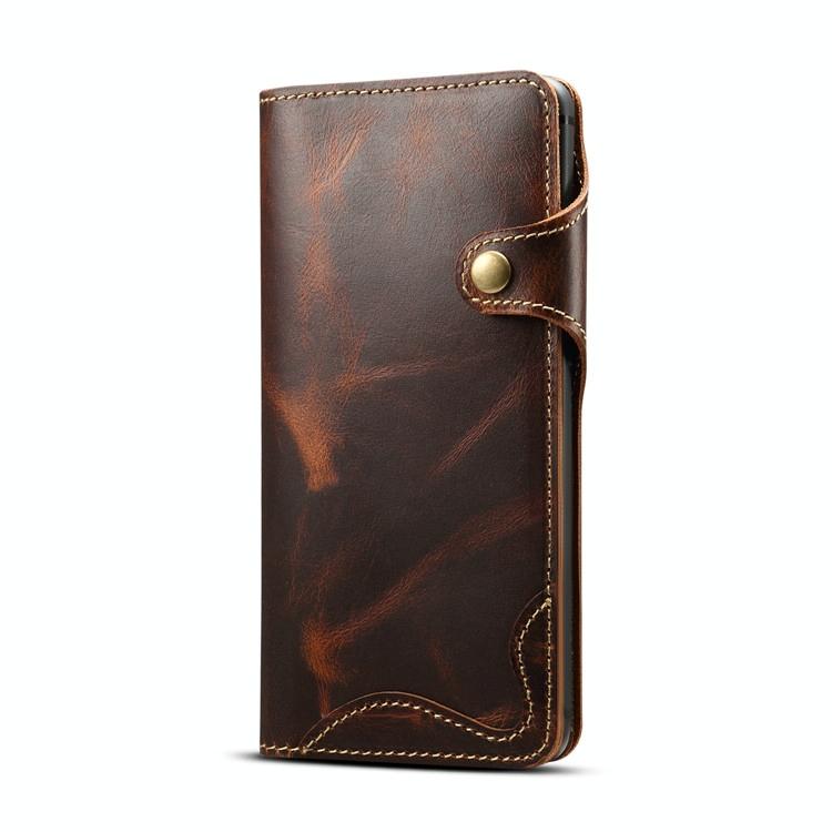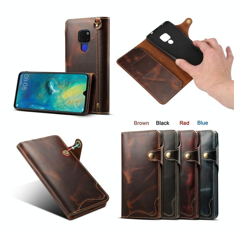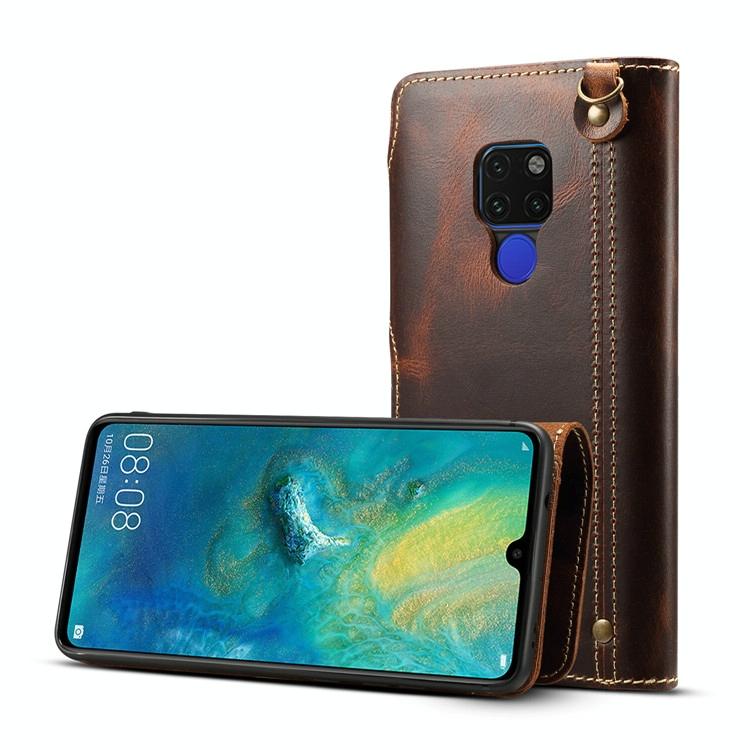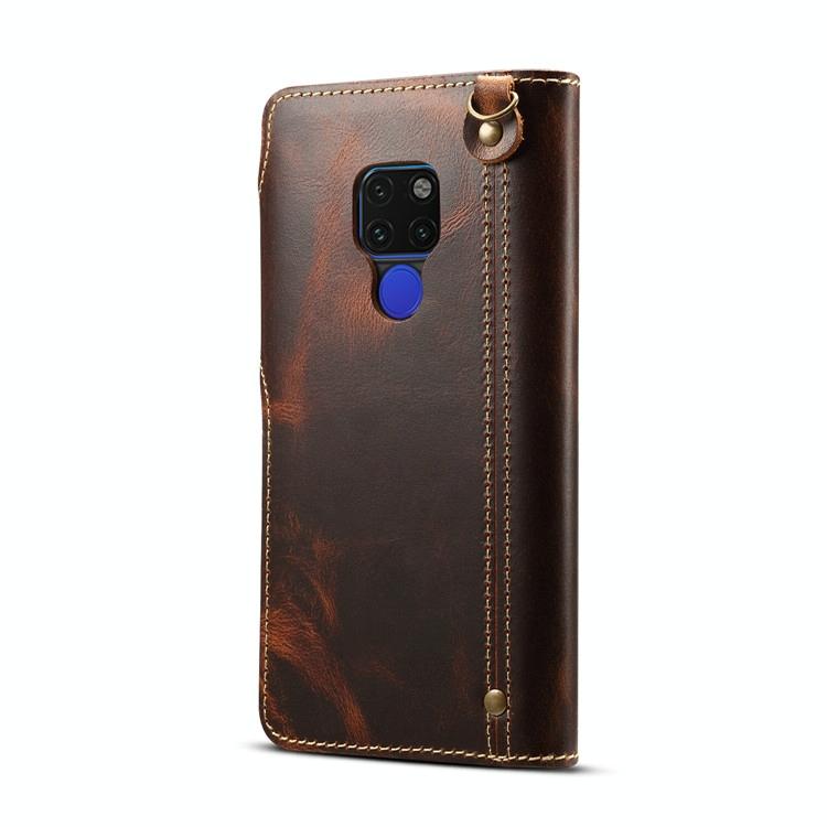 Θήκη δέρματος οριζόντιας αναδίπλωσης με μαγνητικό κούμπωμα για Huawei Mate 20, από δέρμα αγελάδας με κερί λαδιού (Denior) με υποδοχές καρτών & πορτοφόλι (Μαύρο) (Denior)