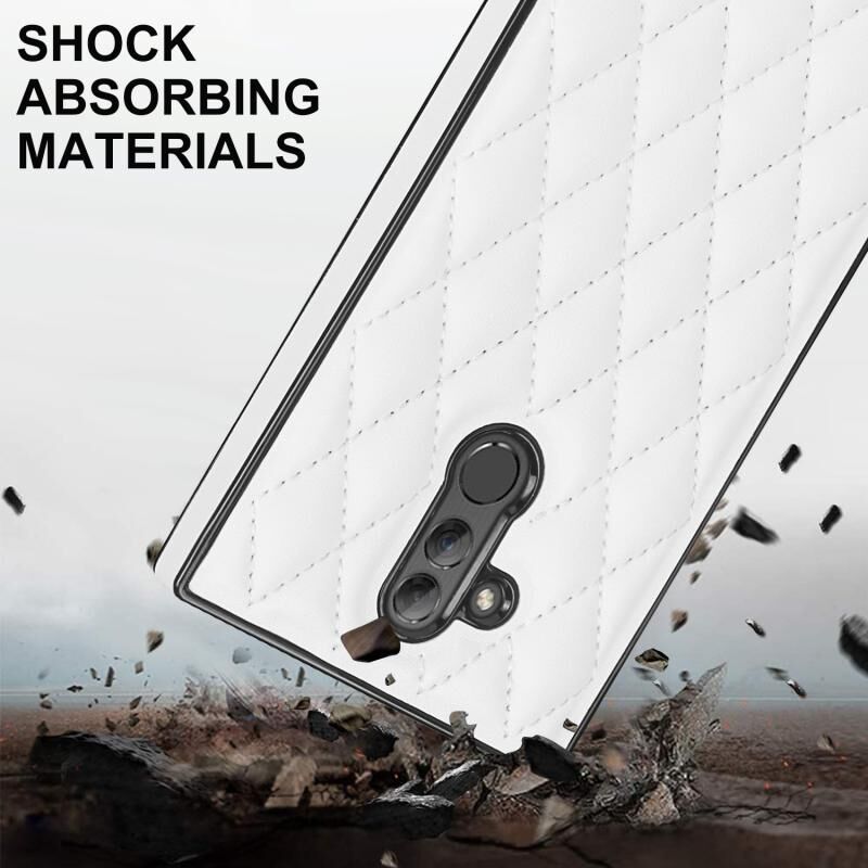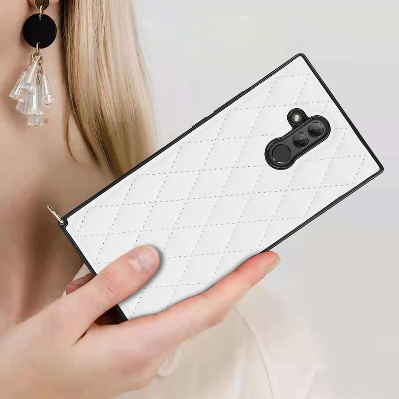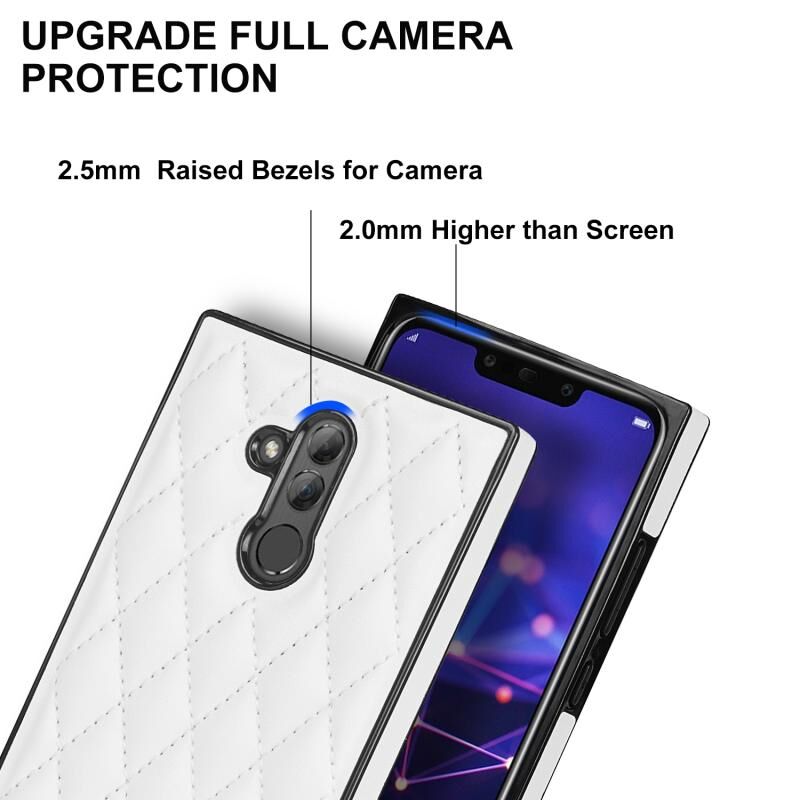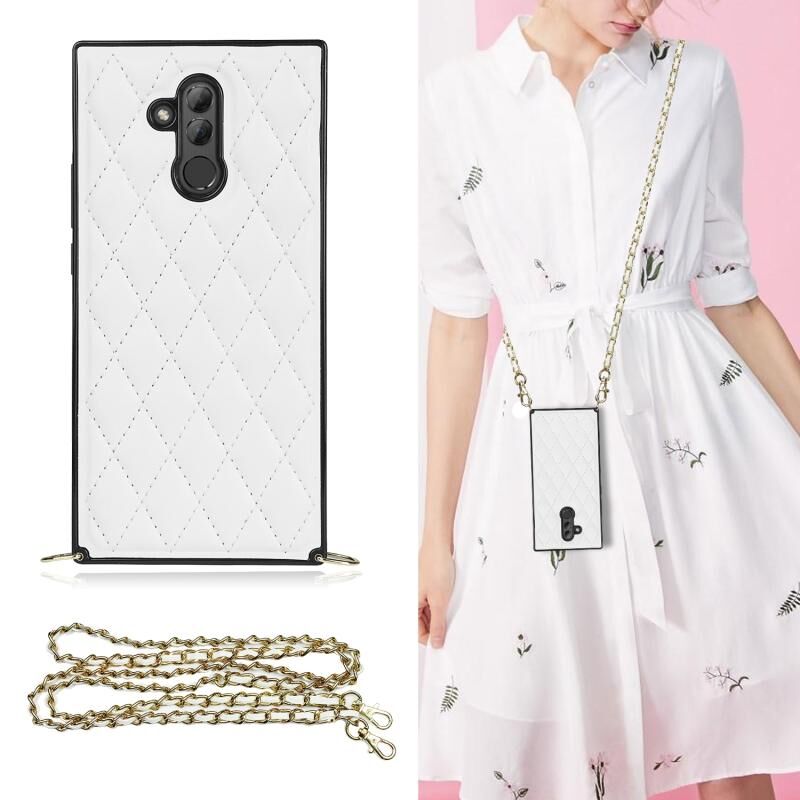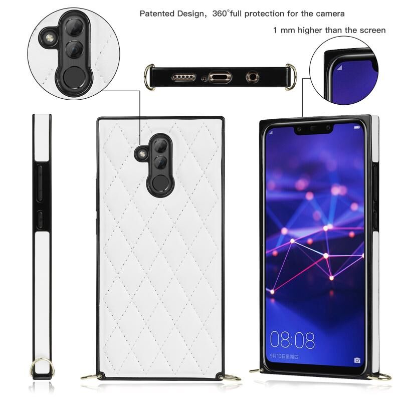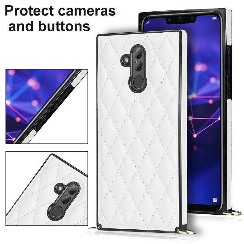 Για Huawei Mate 20 Lite Κομψό ρομβοειδές μοτίβο Microfiber δέρμα +TPU Αδιάβροχη θήκη με σταυρό λουράκι αλυσίδα (λευκό)