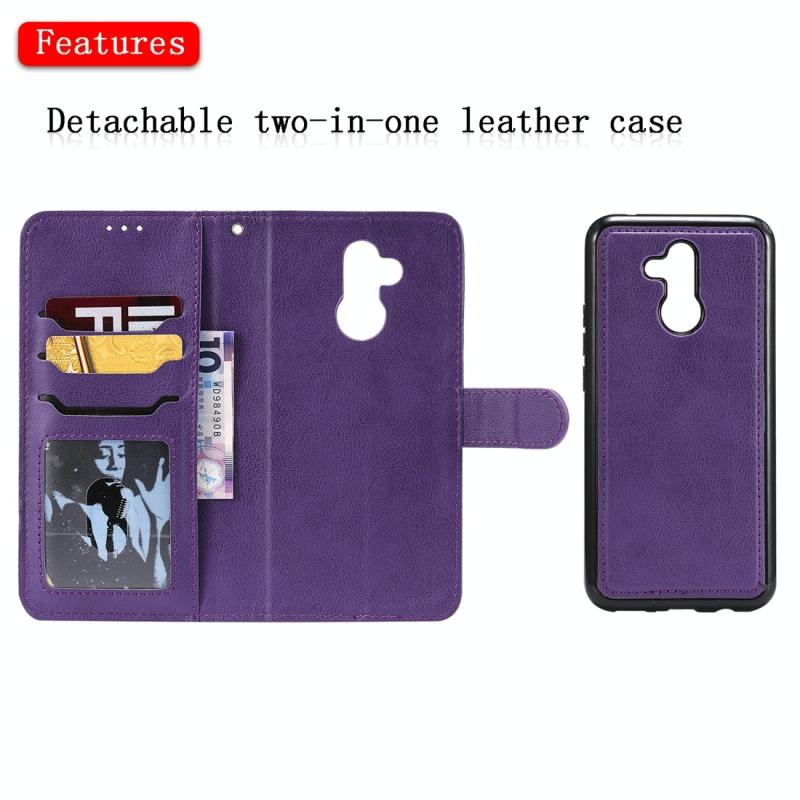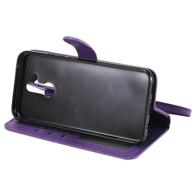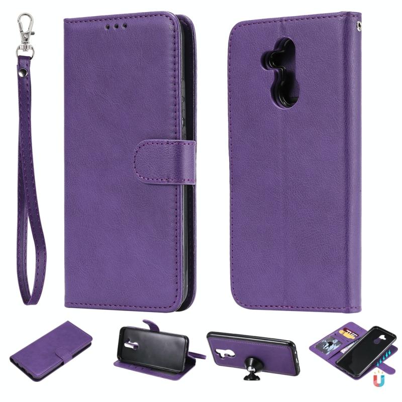 Θήκη προστασίας οριζόντιας αναδίπλωσης για Huawei Mate 20 Lite, μονόχρωμη, με βάση στήριξης, θήκες καρτών, πορτοφόλι, κορνίζα φωτογραφιών & λουρί (Μωβ)
