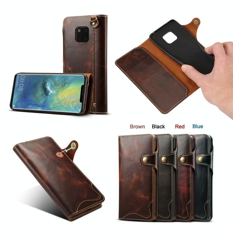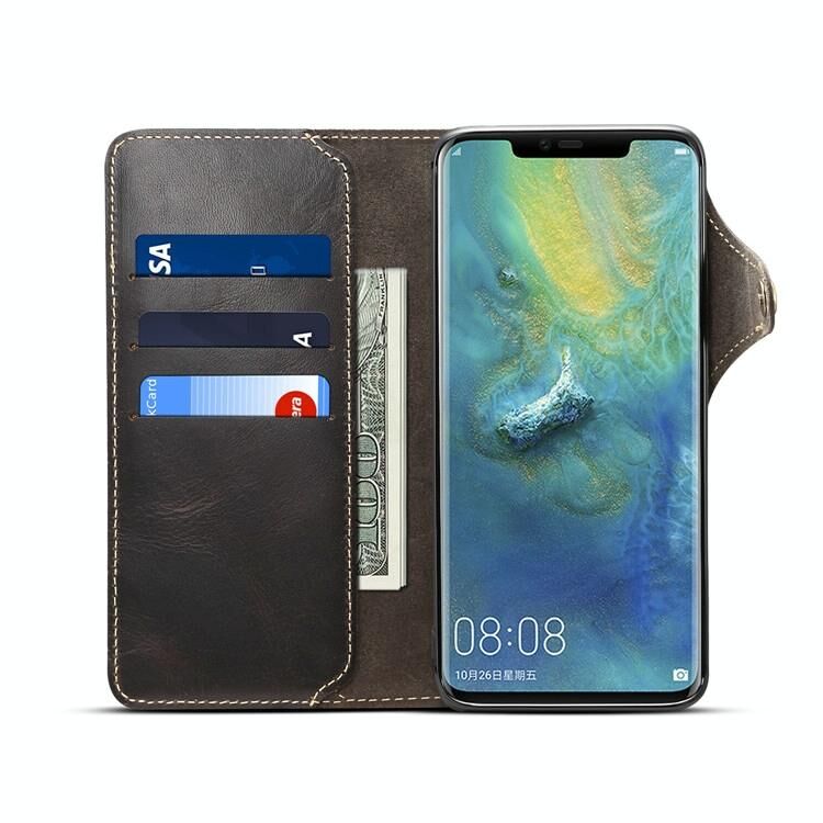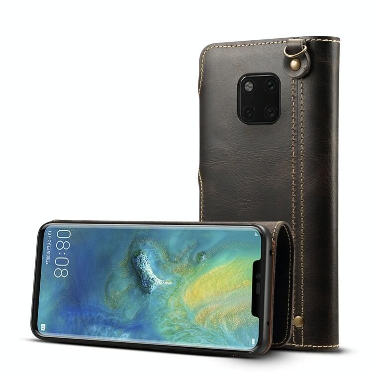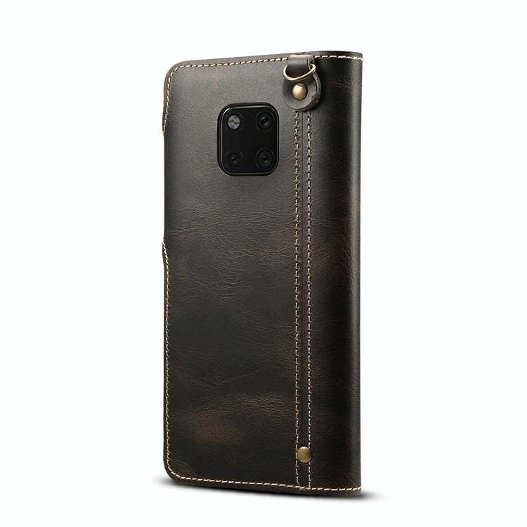 Για Huawei Mate 20 Pro Denior Oil Wax Cowhide μαγνητικό κουμπί οριζόντια Flip δερμάτινη θήκη με υποδοχές για κάρτες & πορτοφόλι (μαύρο) (Denior)