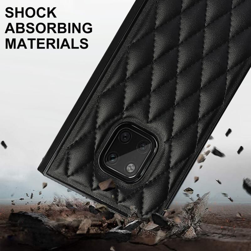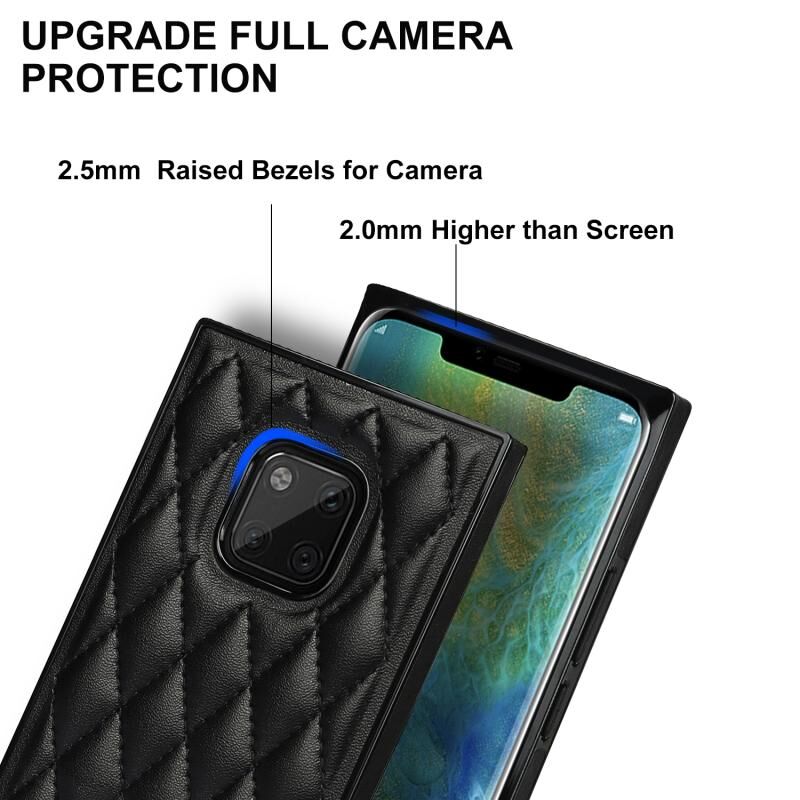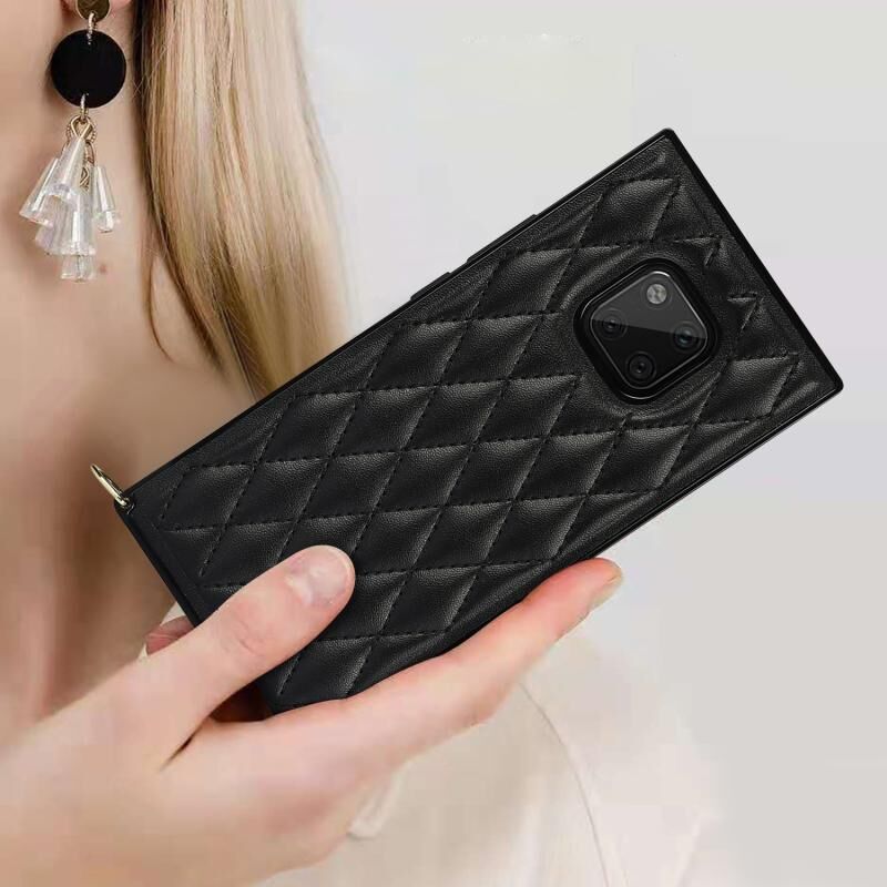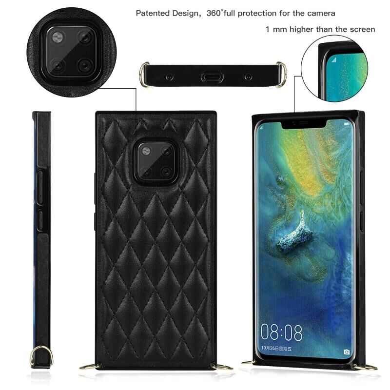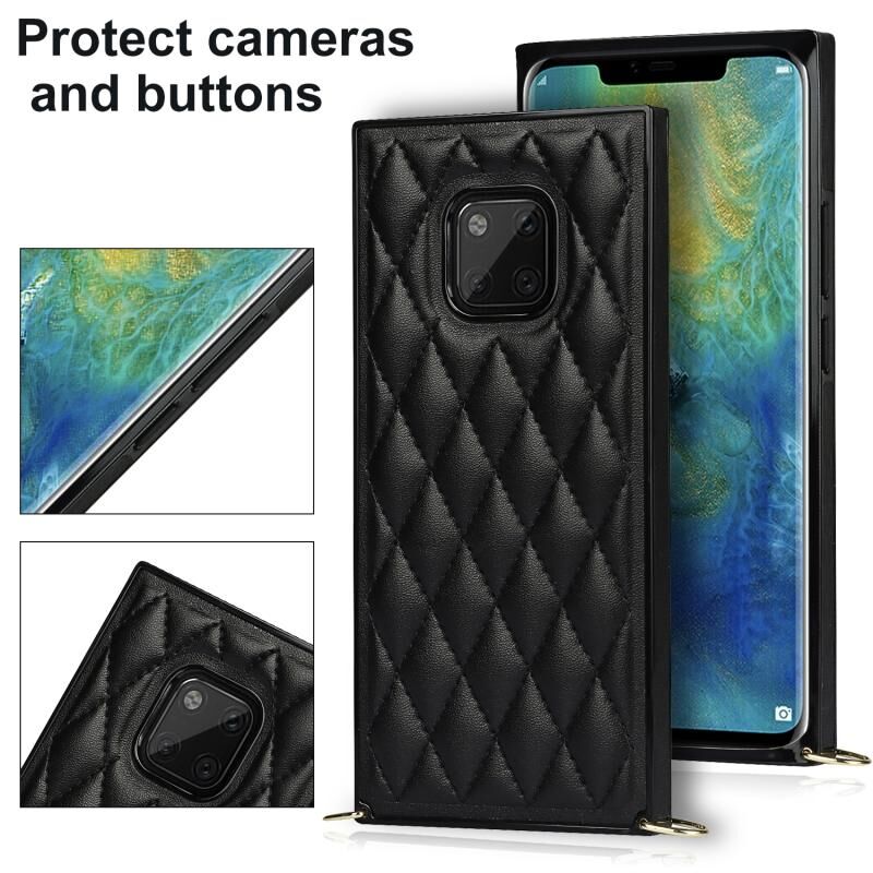Για Huawei Mate 20 Pro Κομψό ρομβοειδές μοτίβο μικροϊνών δέρμα +TPU Shockproof υπόθεση με αλυσίδα λουράκι σταυρού (μαύρο)
