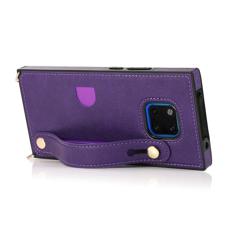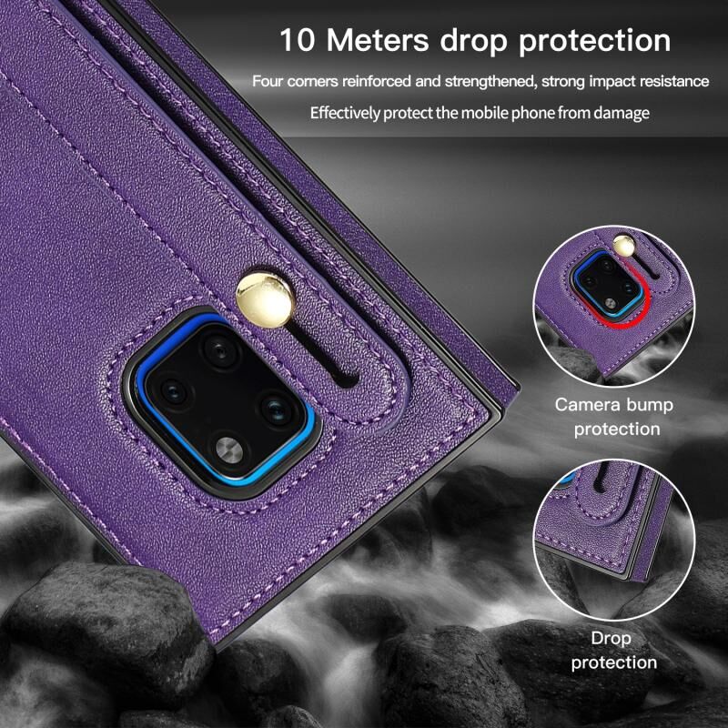 Για το Huawei Mate 20 Pro Λουράκι καρπού PU + TPU Αδιάβροχη προστατευτική θήκη με κορδόνι & θήκη & υποδοχή κάρτας (μωβ)
