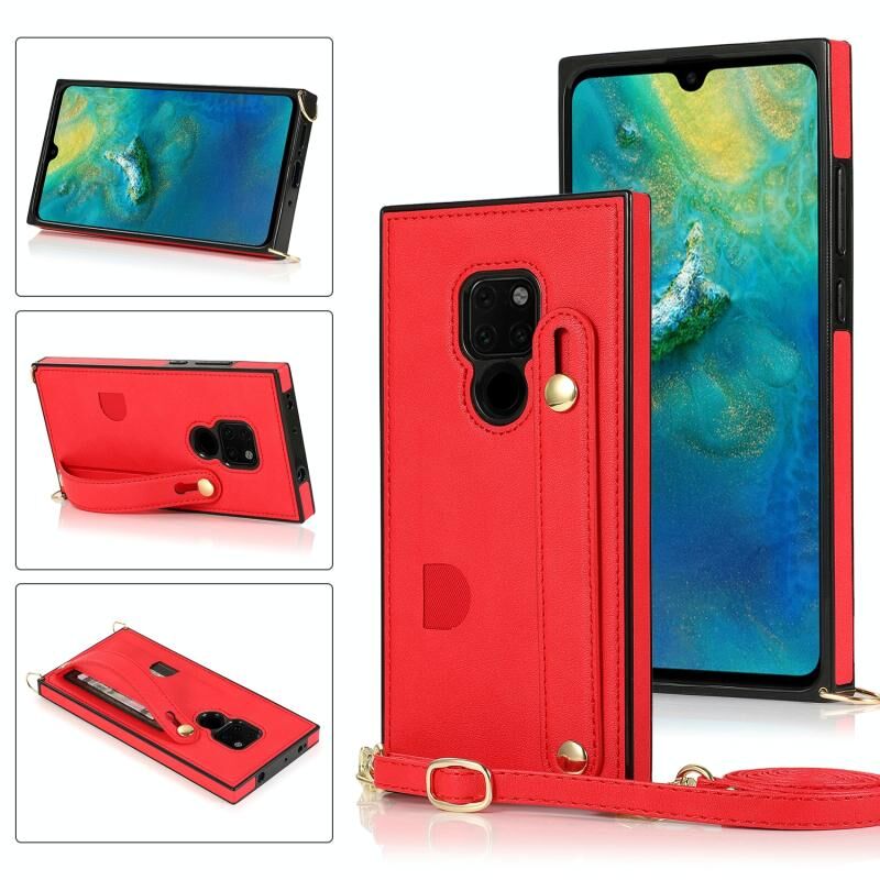 Για Huawei Mate 20 Λουράκι καρπού PU + TPU Αδιάβροχη προστατευτική θήκη με κορδόνι σταυρού & κάτοχος & υποδοχή κάρτας (κόκκινο)
