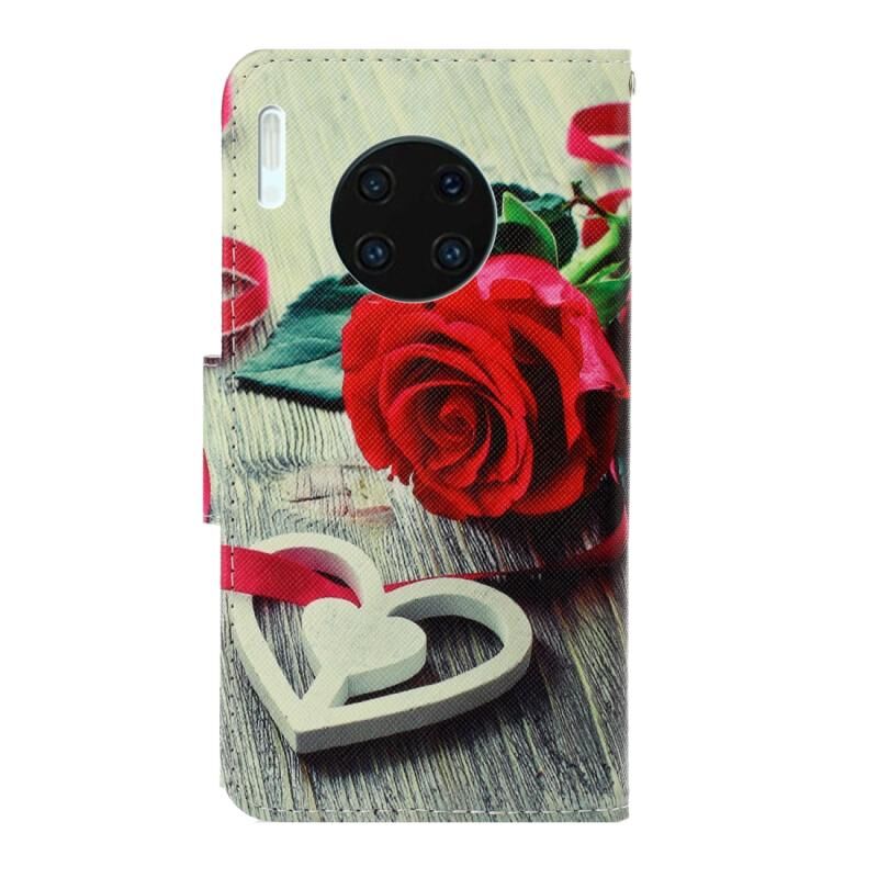 Θήκη για Huawei Mate 30 3D με έγχρωμο σχέδιο, οριζόντια αναδίπλωση από δερματίνη PU με βάση & υποδοχές καρτών & πορτοφόλι (Κόκκινο Ρόδο)