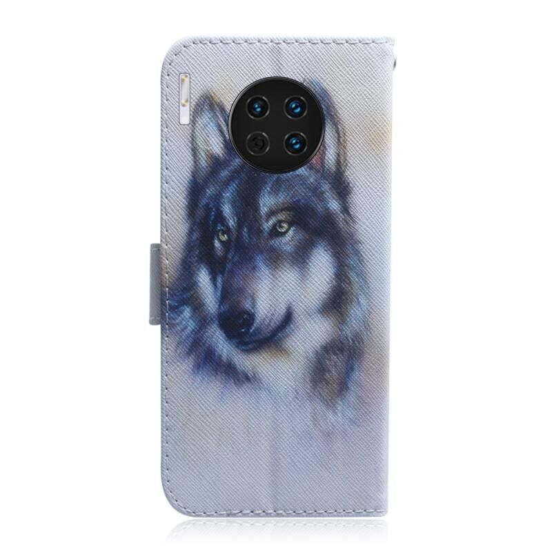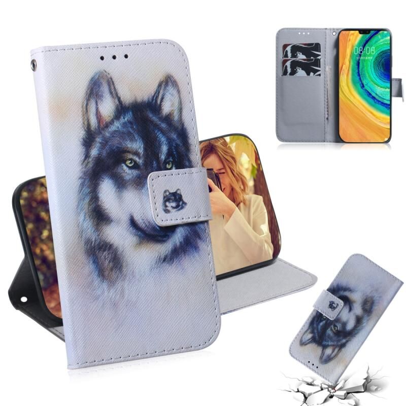 Θήκη Huawei Mate 30 / 5G με πολύχρωμο σχέδιο, οριζόντια αναδίπλωση από δερματίνη PU με βάση & θήκες για κάρτες & πορτοφόλι (Λευκός Λύκος)