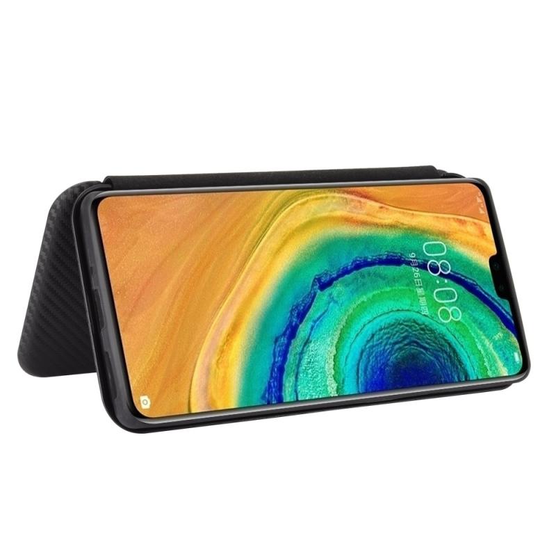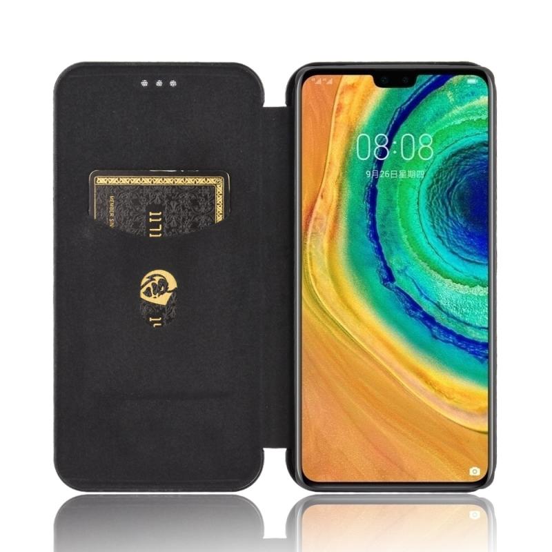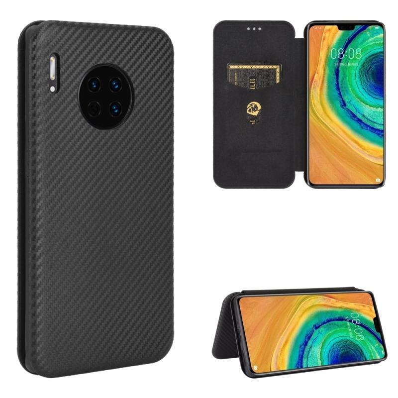 For Huawei Mate 30 Carbon Fiber Texture Horizontal Flip TPU + PC + PU Leather Case with Card Slot(Black)