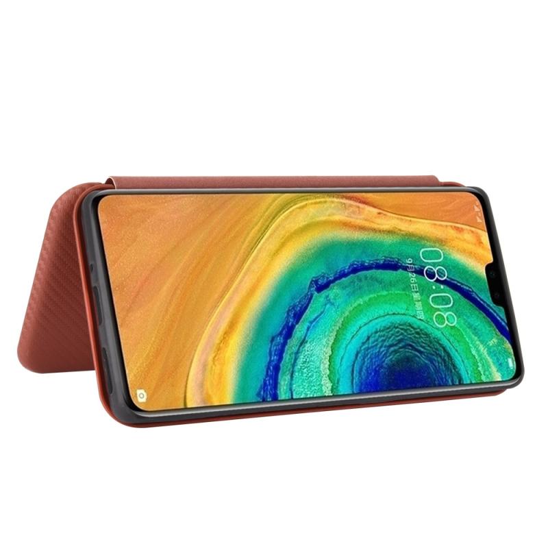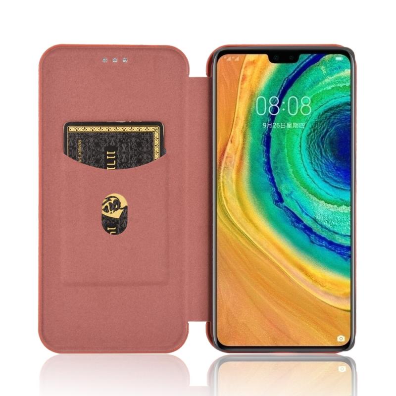 For Huawei Mate 30 Carbon Fiber Texture Horizontal Flip TPU + PC + PU Leather Case with Card Slot(Brown)