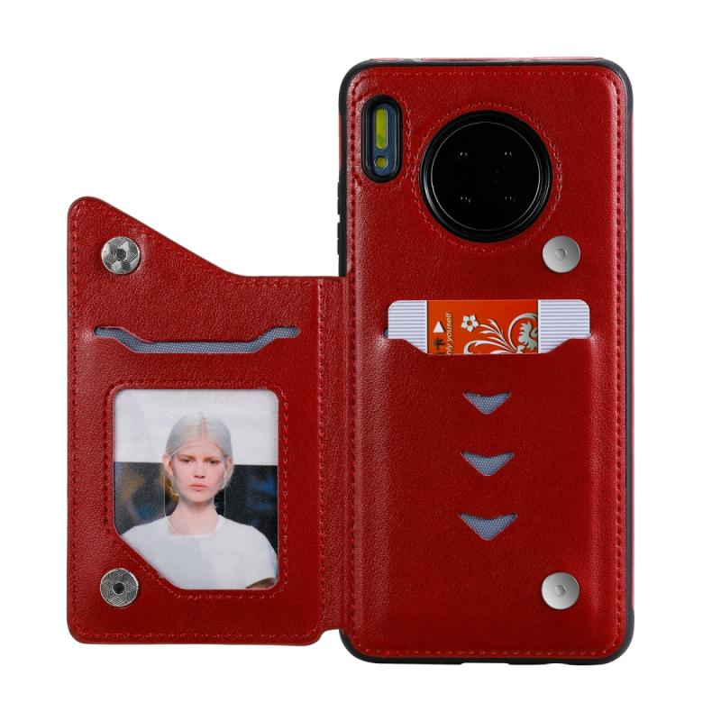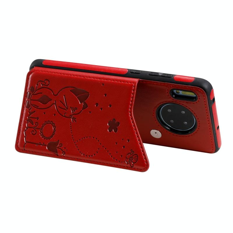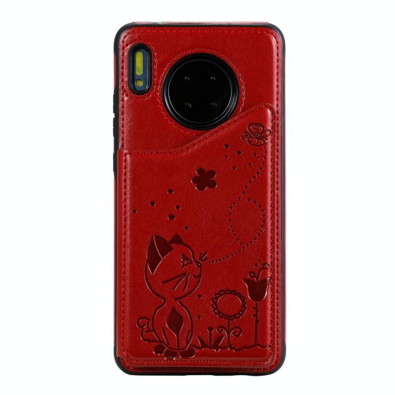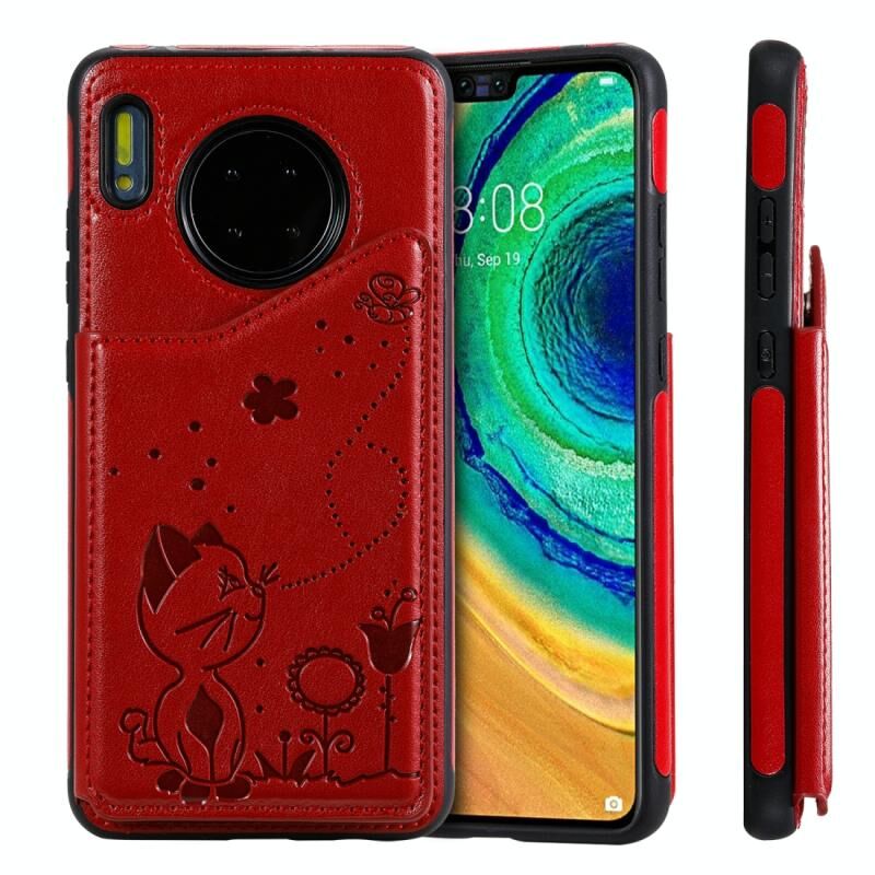 Θήκη προστασίας με ανάγλυφο σχέδιο "Cat Bee" για Huawei Mate 30, αντικραδασμική, με θήκες για κάρτες & κορνίζα φωτογραφιών (Κόκκινο)