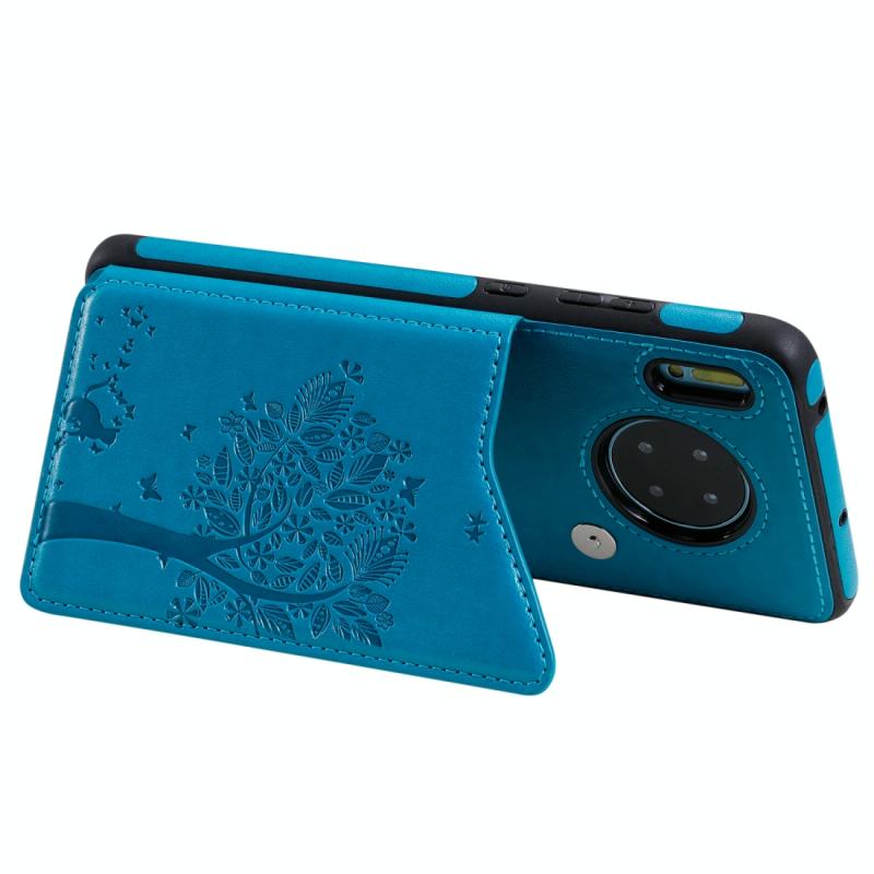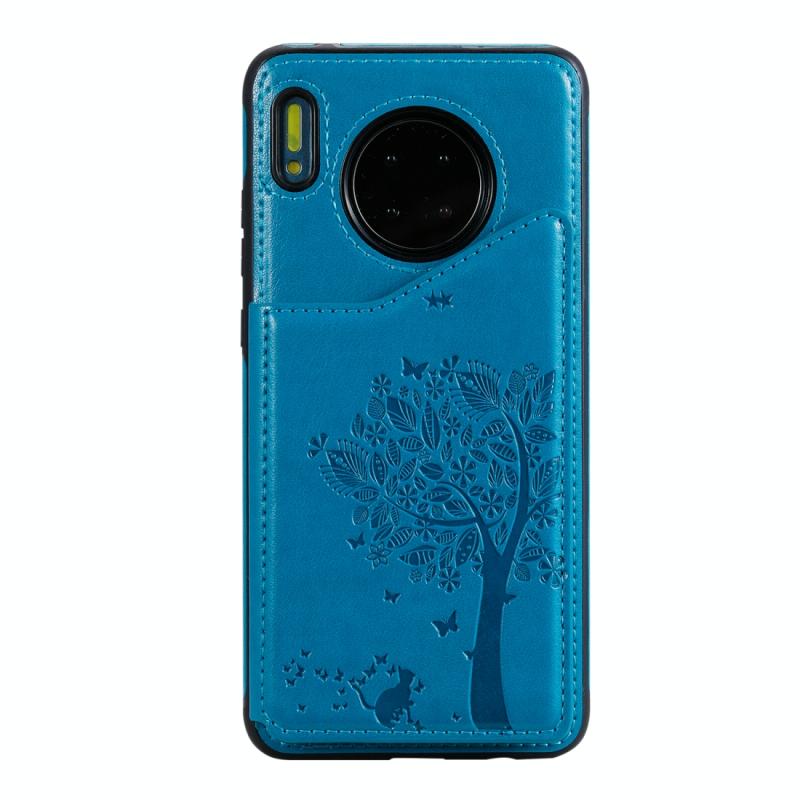 For Huawei Mate 30 Cat Tree Embossing Pattern Shockproof Protective Case with Card Slots & Photo Frame(Blue)