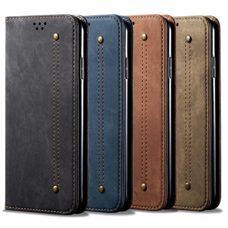 Θήκη Huawei Mate 30 με υφή τζιν, casual στυλ, οριζόντια αναδιπλούμενη από δέρμα με βάση στήριξης & υποδοχές καρτών & πορτοφόλι (Μαύρο)