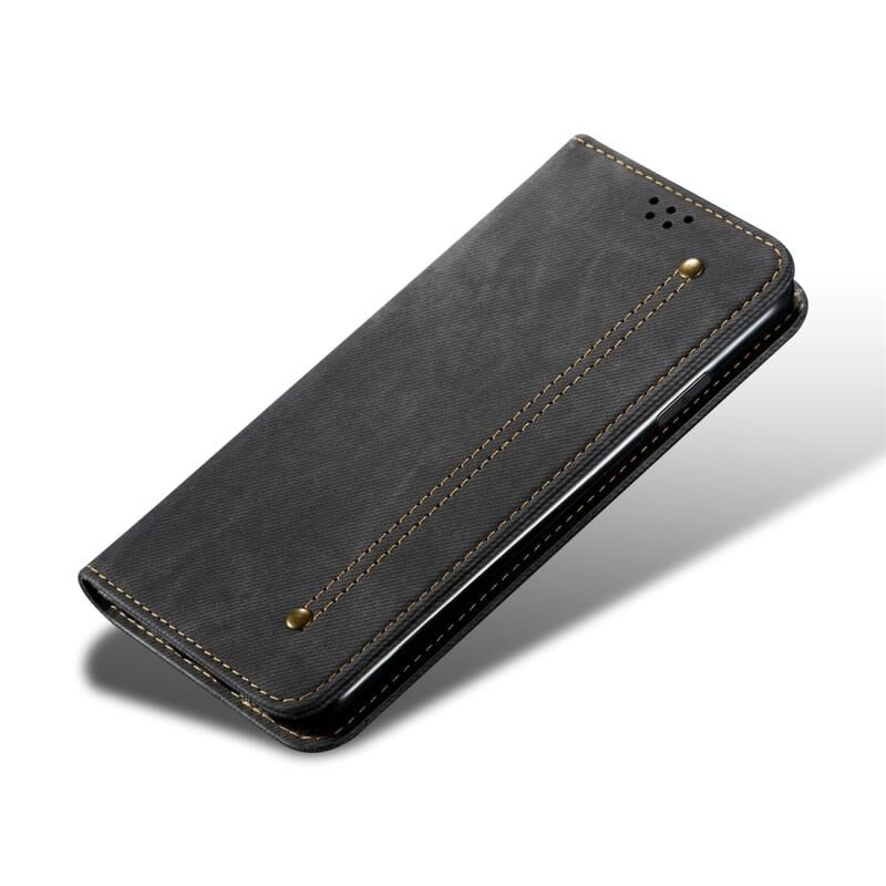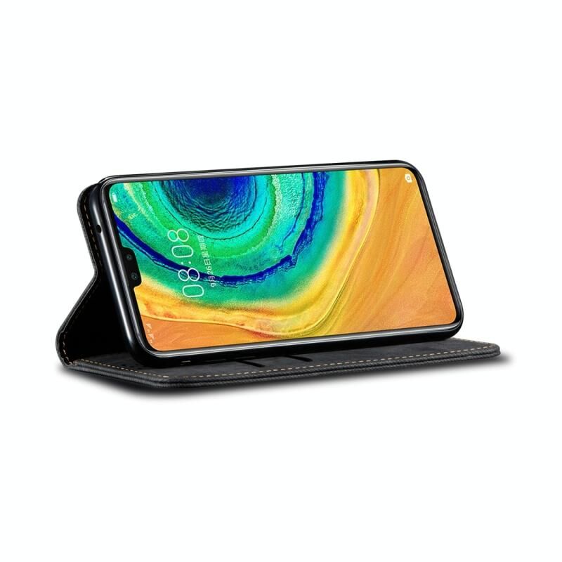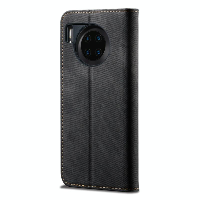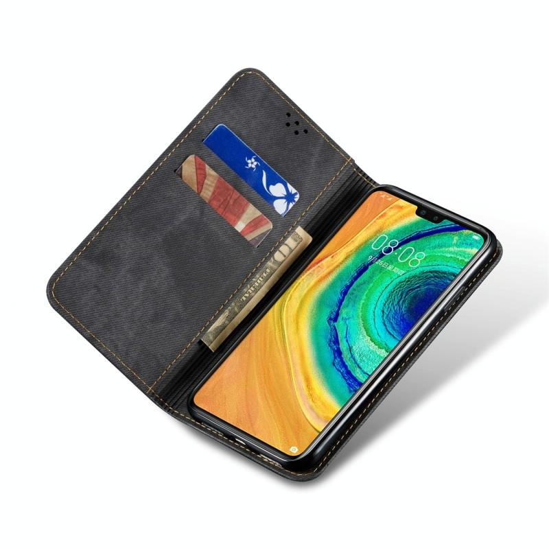 Θήκη Huawei Mate 30 με υφή τζιν, casual στυλ, οριζόντια αναδιπλούμενη από δέρμα με βάση στήριξης & υποδοχές καρτών & πορτοφόλι (Μαύρο)
