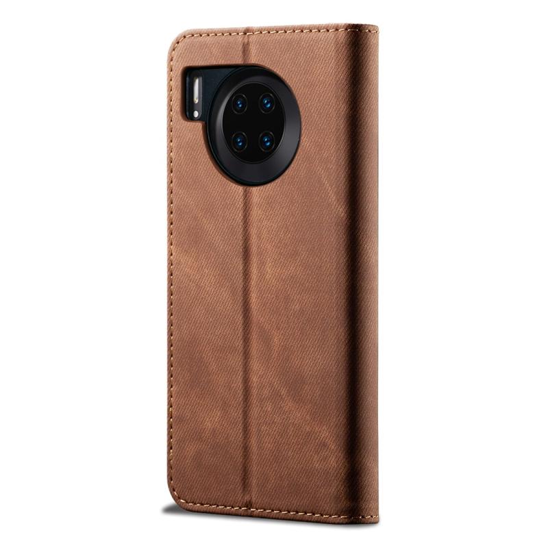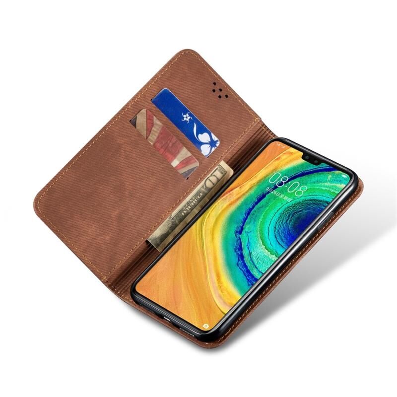 Θήκη Huawei Mate 30 με υφή τζιν, casual στυλ, οριζόντια αναδιπλούμενη από δέρμα με βάση στήριξης & υποδοχές καρτών & πορτοφόλι (Μαύρο)
