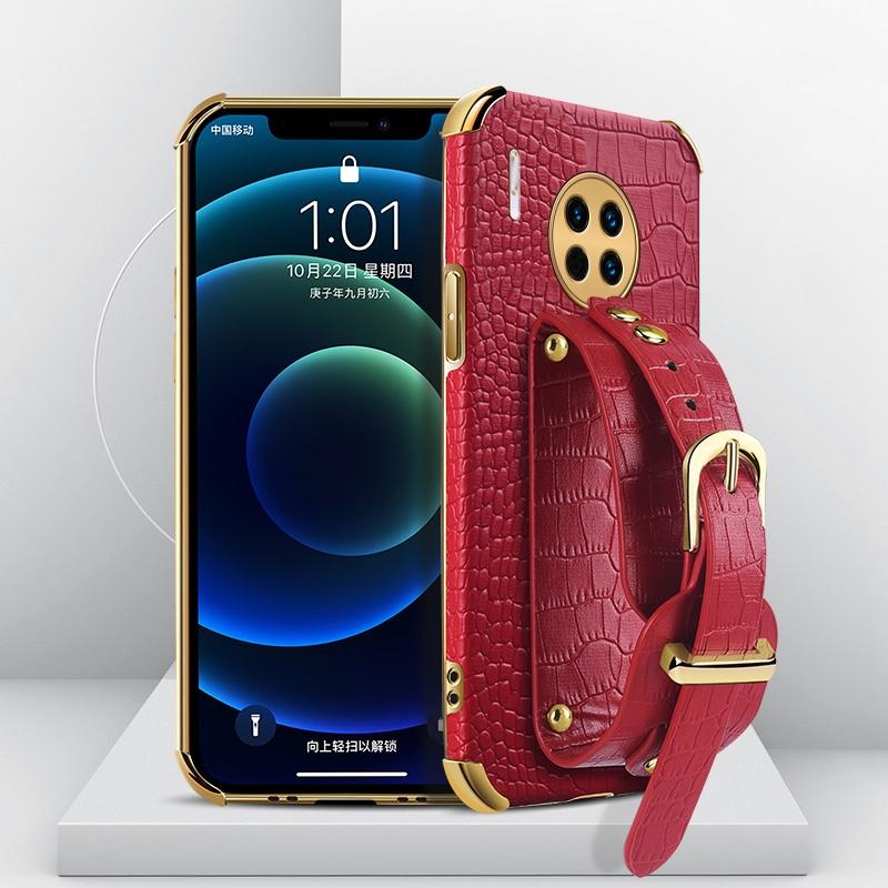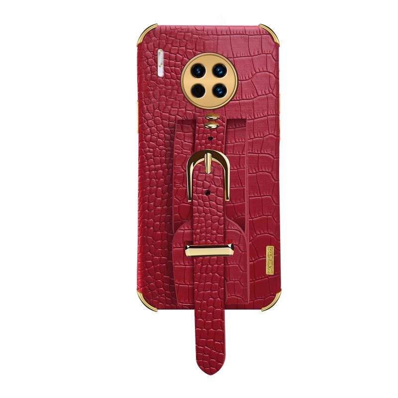 Θήκη για Huawei Mate 30, Ηλεκτρολυτική TPU με Δερμάτινη Υφή Κροκόδειλου και Λουρί Χεριού (Κόκκινο)
