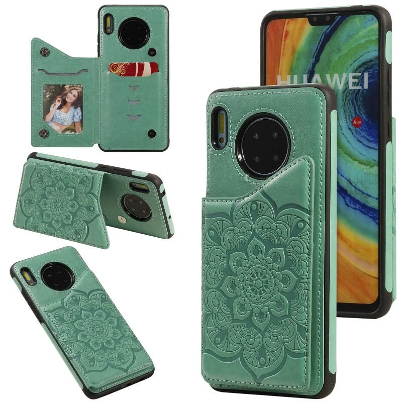 Για Huawei Mate 30 λουλούδι ανάγλυφο μοτίβο Shockproof προστατευτική θήκη με υποδοχή & υποδοχές καρτών & πλαίσιο φωτογραφιών (πράσινο)