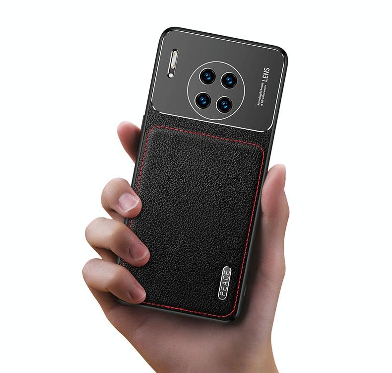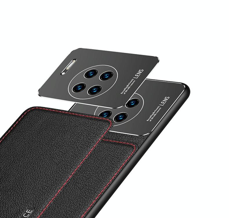 Θήκη Προστασίας Huawei Mate 30 με Μεταλλική Ματ Υφή + Δέρμα (Μπλε)