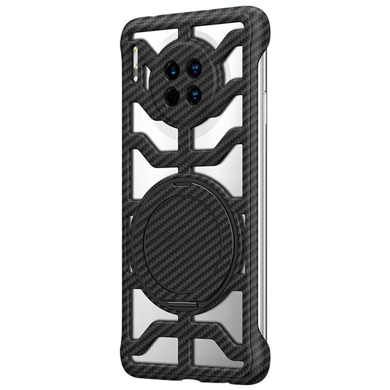 For Huawei Mate 30 Hollow Carbon Fiber Rotating Bracket MagSafe Phone Case(Black)