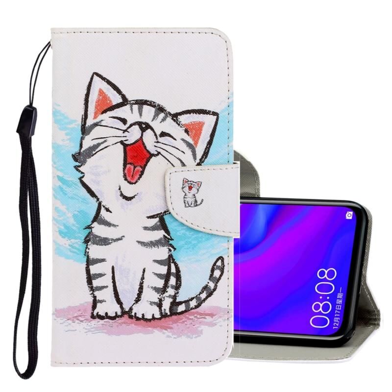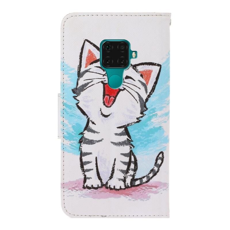 Θήκη για Huawei Mate 30 Lite 3D με έγχρωμο σχέδιο, οριζόντια αναδιπλούμενη από δερματίνη PU με βάση στήριξης & υποδοχές καρτών & πορτοφόλι (Κόκκινο Στόμα Γάτας)