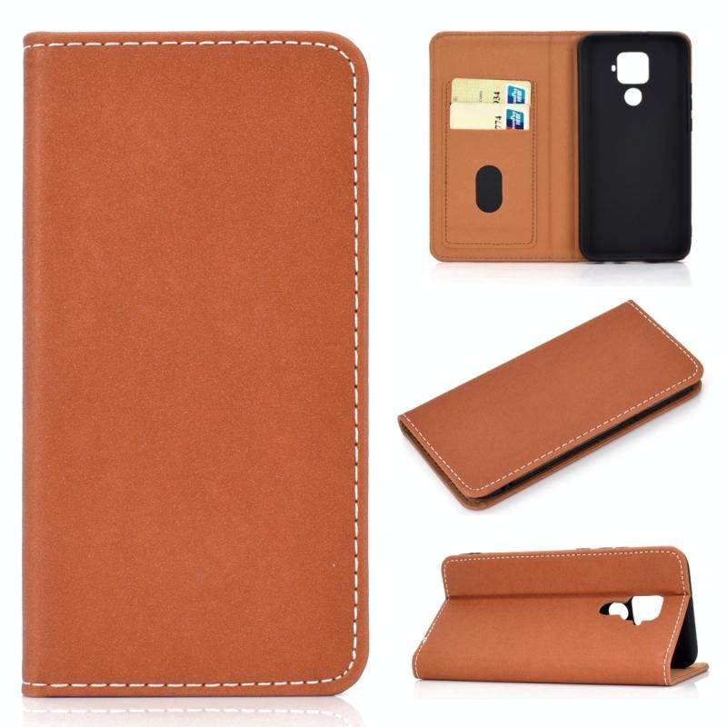 For Huawei Mate 30 Lite Solid Color Magnetic Horizontal Flip Leather Case with Card Slot & Holder(Brown)