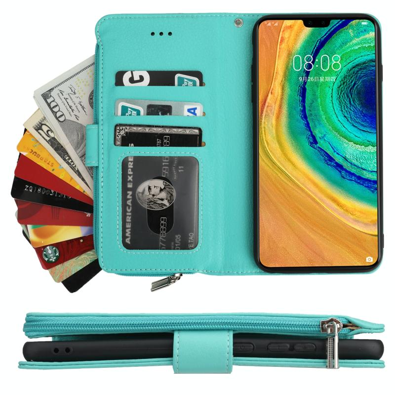 For Huawei Mate 30 Microfiber Zipper Horizontal Flip Leather Case(Green)