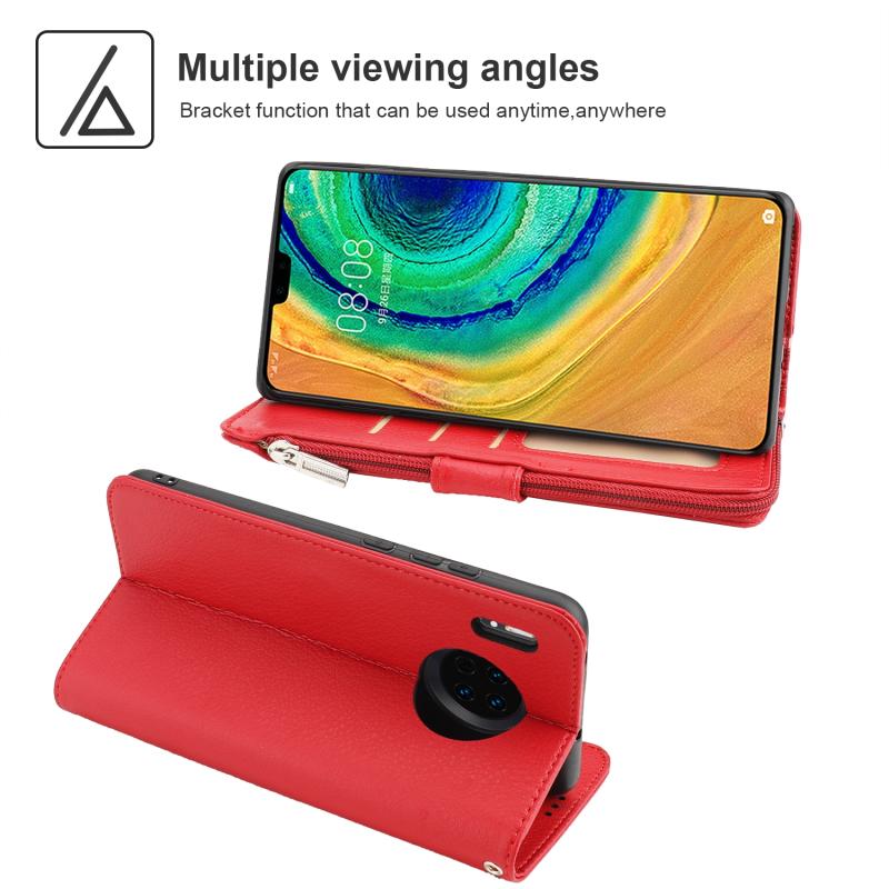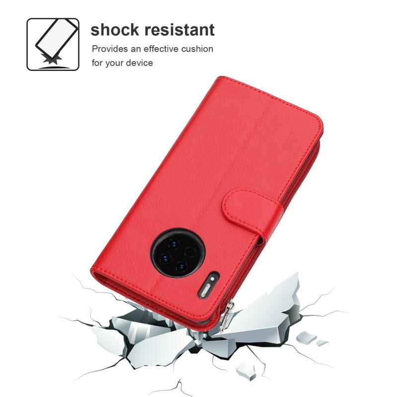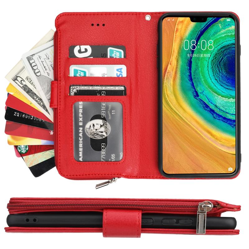 Θήκη Huawei Mate 30 από μικροΐνες με φερμουάρ, οριζόντια, δερμάτινη (Πράσινη)