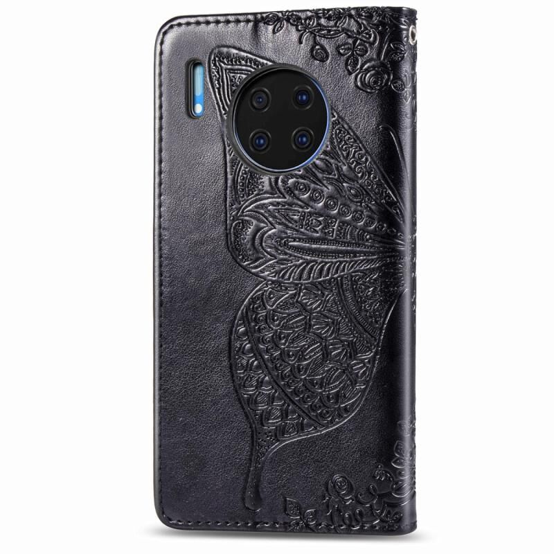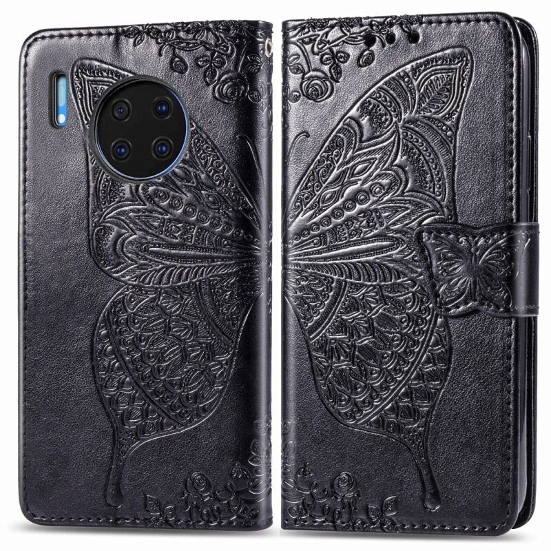 Θήκη Huawei Mate 30 Pro Butterfly Love Flower Embossed Οριζόντια Δερμάτινη με Στήριγμα / Θήκη Κάρτας / Πορτοφόλι / Λουρί (Μαύρο)