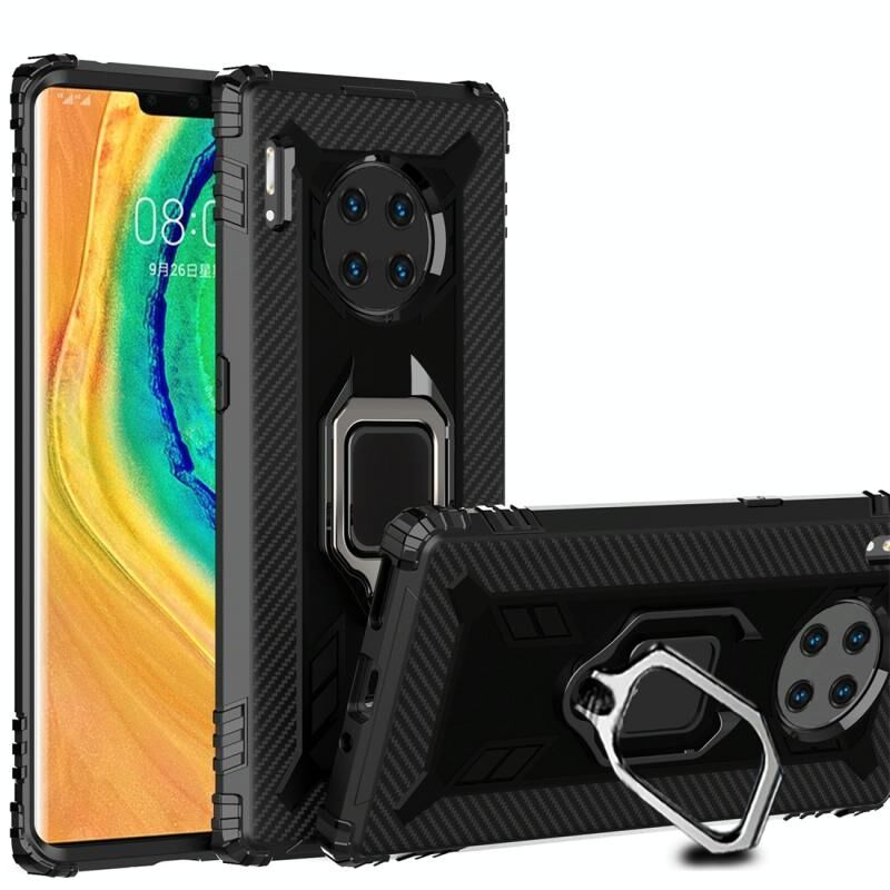 Για Huawei Mate 30 Pro Carbon Fiber Προστατευτική θήκη με 360 μοίρες περιστρεφόμενη θήκη δακτυλίου (Μαύρο)
