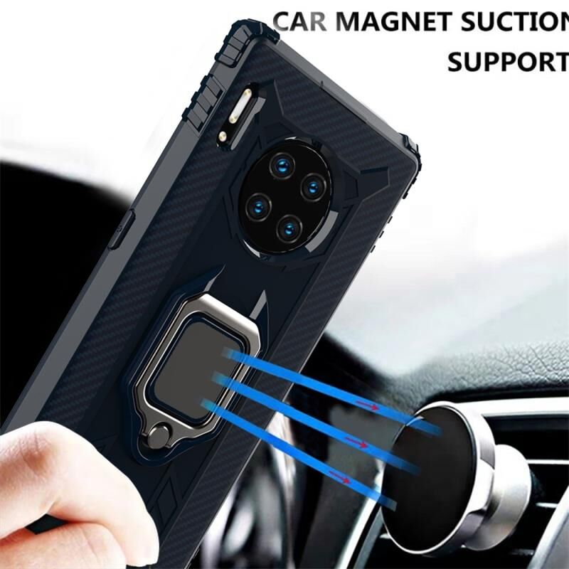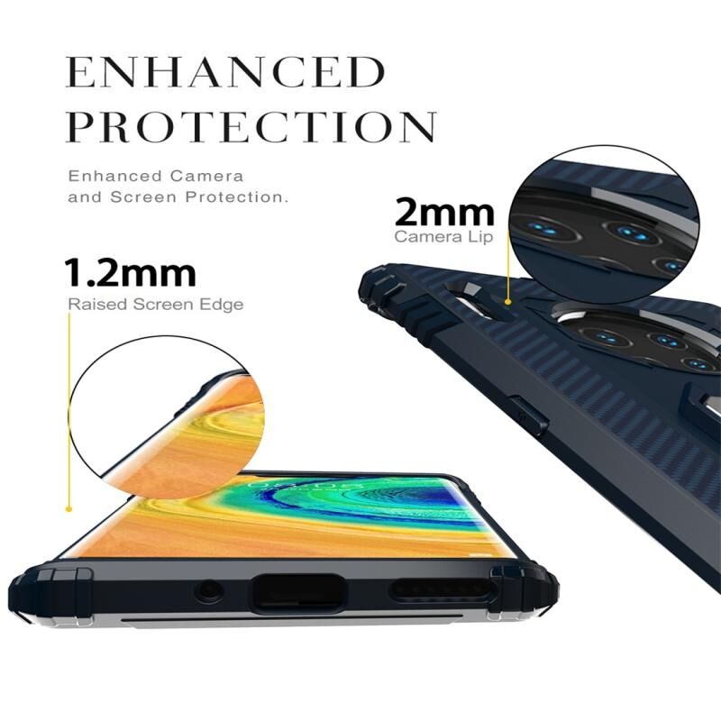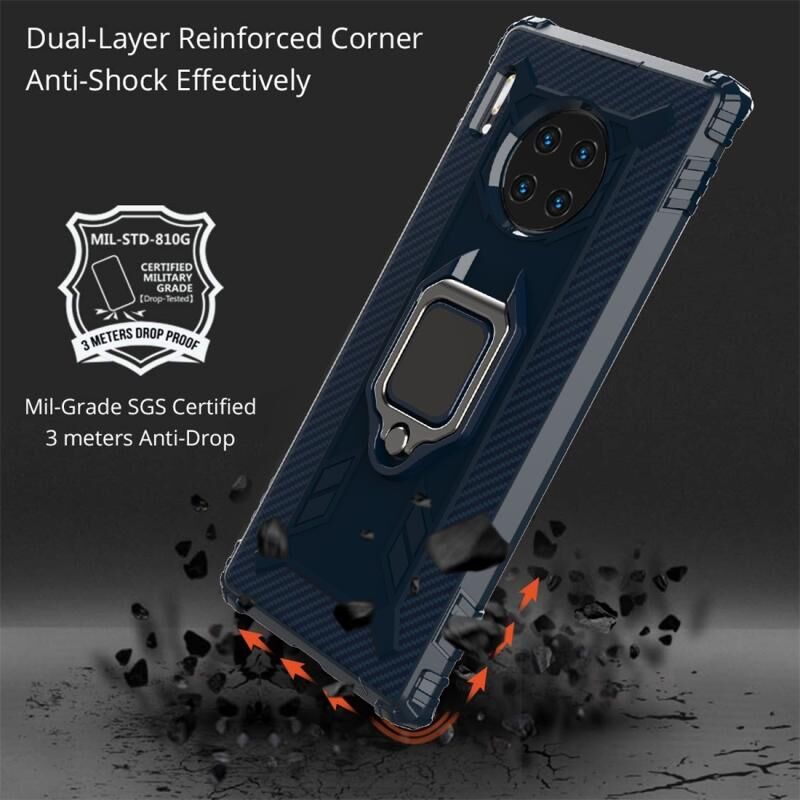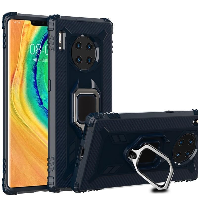Για Huawei Mate 30 Pro Carbon Fiber Προστατευτική θήκη με 360 μοίρες περιστρεφόμενη θήκη δακτυλίου (μπλε)
