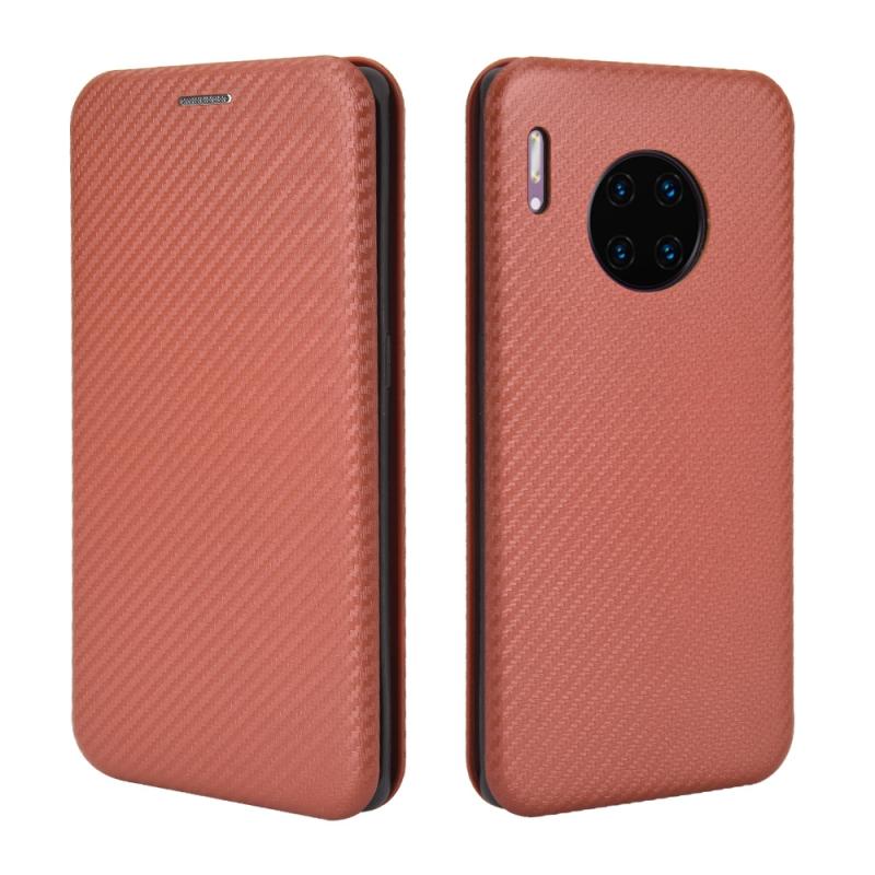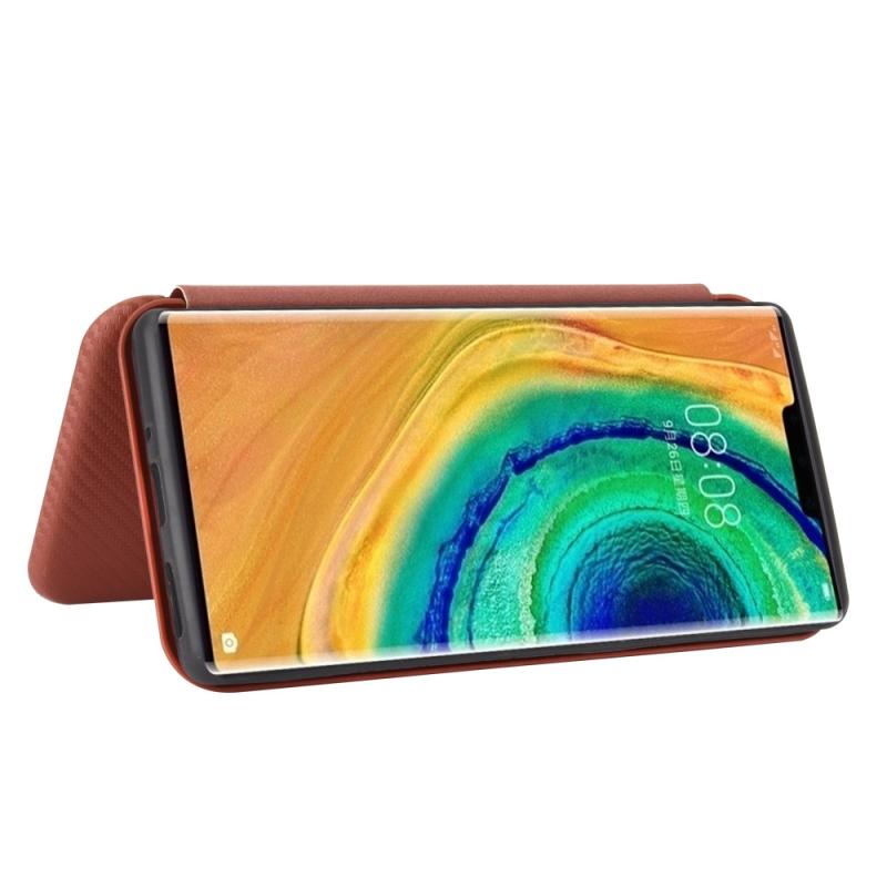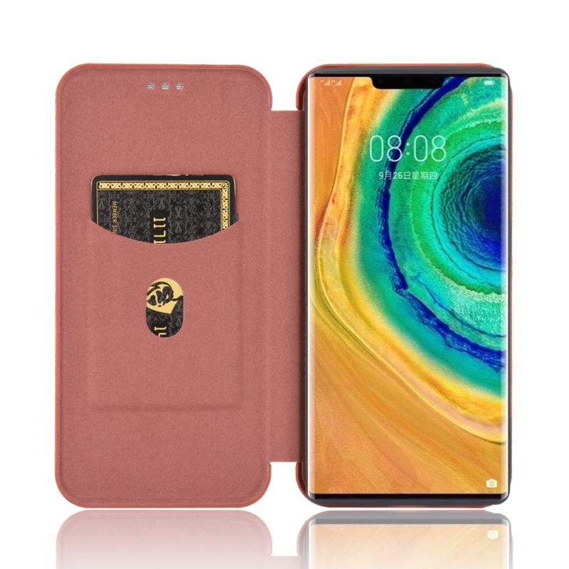 For Huawei Mate 30 Pro Carbon Fiber Texture Horizontal Flip TPU + PC + PU Leather Case with Card Slot(Brown)