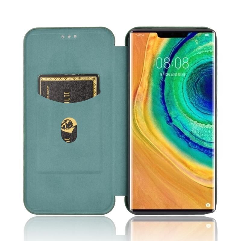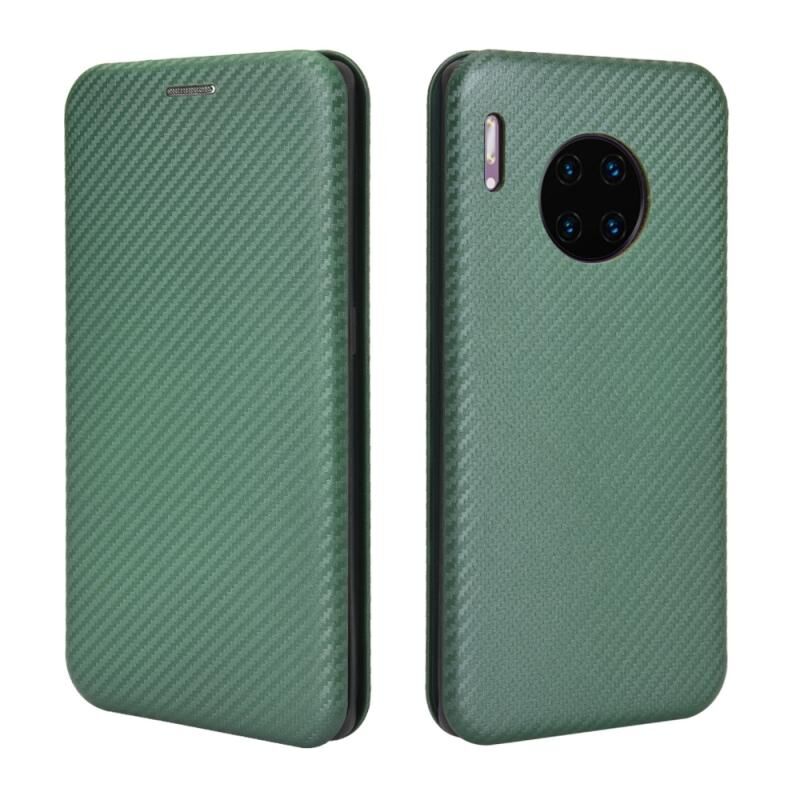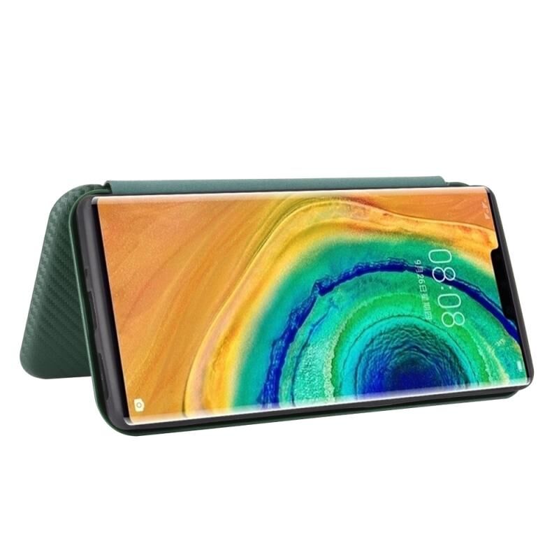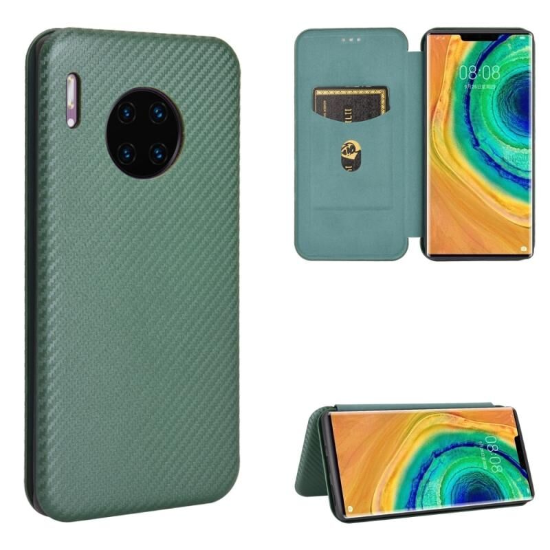 Θήκη για Huawei Mate 30 Pro με υφή ανθρακονημάτων, οριζόντια, αναδιπλούμενη, από TPU + PC + Δερματίνη PU με θήκη για κάρτες (πράσινο)