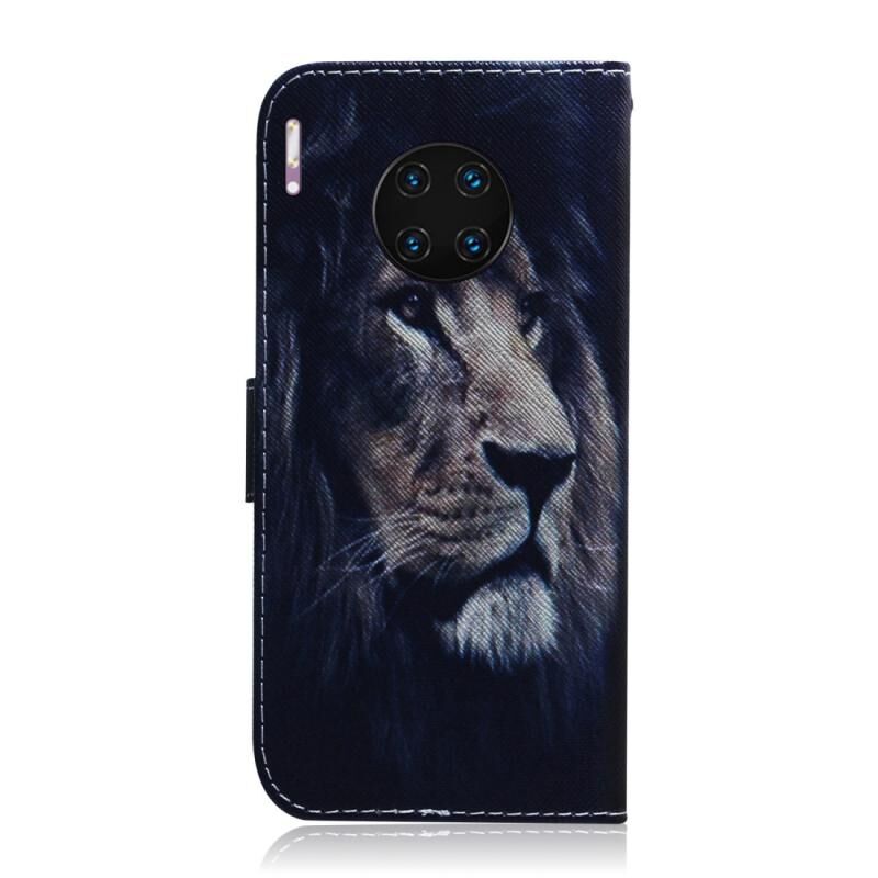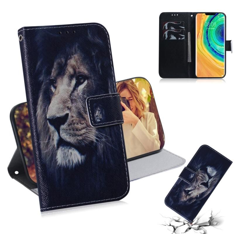 Θήκη Huawei Mate 30 Pro με πολύχρωμο σχέδιο ζωγραφικής, οριζόντια αναδίπλωση από δερματίνη PU με βάση & υποδοχές καρτών & πορτοφόλι (Λιοντάρι)