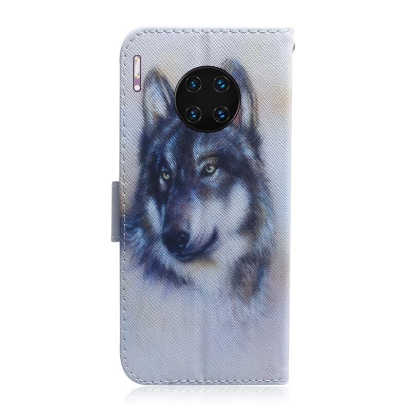 Θήκη Huawei Mate 30 Pro με πολύχρωμο σχέδιο, οριζόντια αναδίπλωση από δερματίνη PU με βάση στήριξης & θήκες για κάρτες & πορτοφόλι (Λευκός Λύκος)
