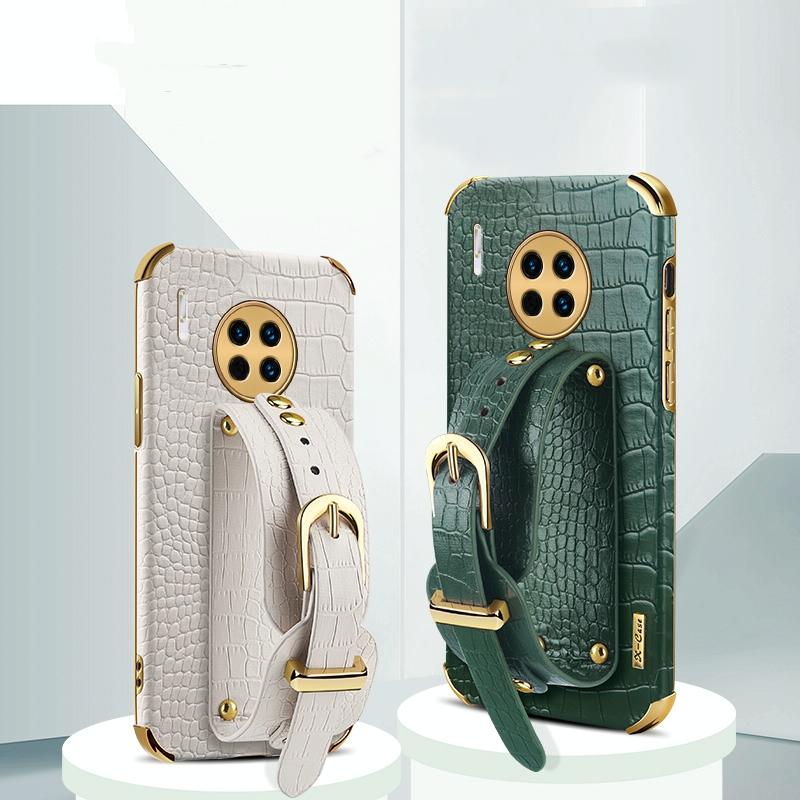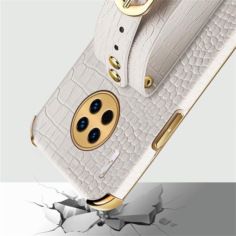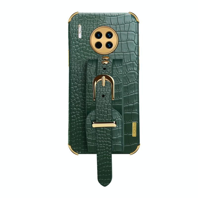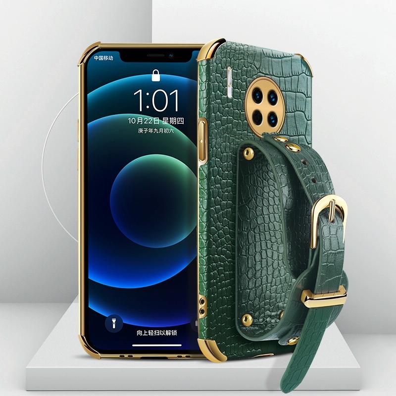 Θήκη για Huawei Mate 30 Pro Electroplated TPU με Δερμάτινο Μοτίβο Κροκόδειλου και Λουρί Χεριού (Μαύρο)