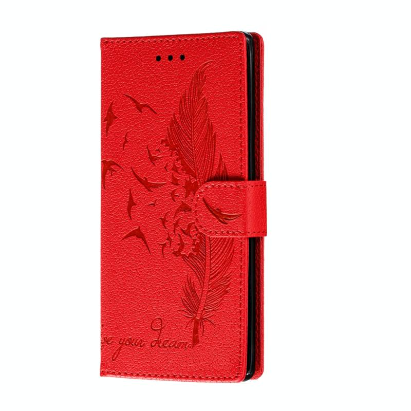 For Huawei Mate 30 Pro Feather Pattern Litchi Texture Horizontal Flip Leather Case with Holder & Wallet & Card Slots(Red)