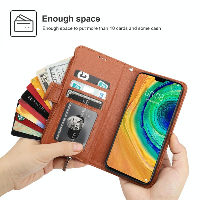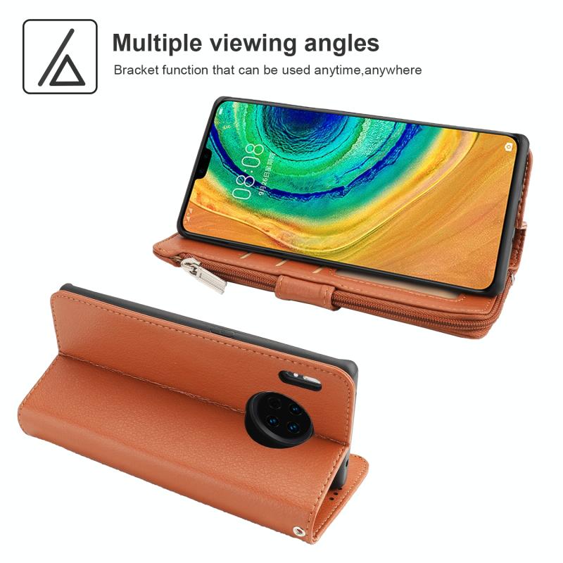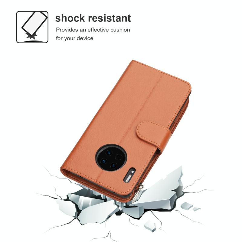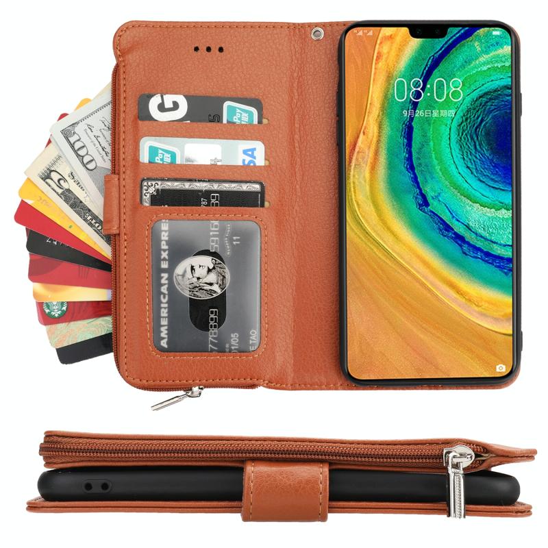 For Huawei Mate 30 Pro Microfiber Zipper Horizontal Flip Leather Case(Brown)