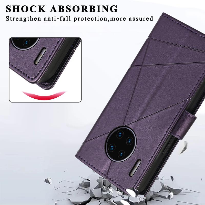 For Huawei Mate 30 Pro PU Genuine Leather Texture Embossed Line Phone Case(Purple)