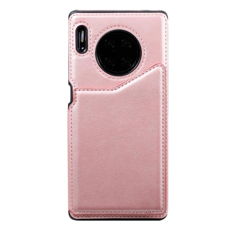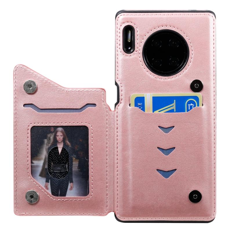 Θήκη προστασίας για Huawei Mate 30 Pro με αντικραδασμική υφή δέρματος μοσχαριού, με βάση στήριξης & θήκες καρτών & πλαίσιο (Χρυσορόδινο)