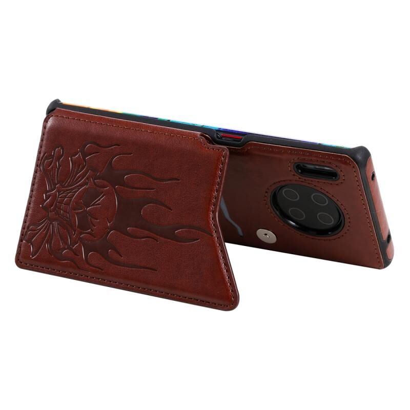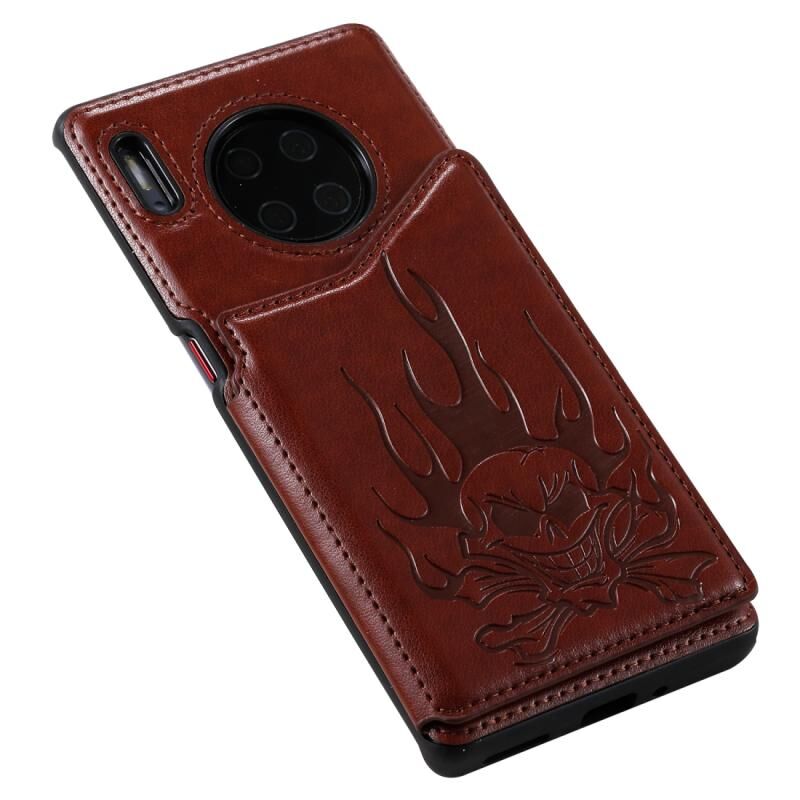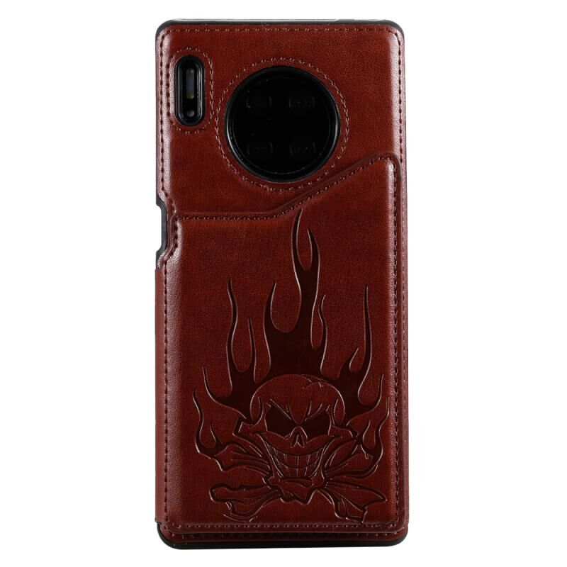 Θήκη προστασίας για Huawei Mate 30 Pro με ανάγλυφο σχέδιο κρανίου, αντικραδασμική, με βάση στήριξης & θήκες καρτών & πορτοφόλι (Γκρι)