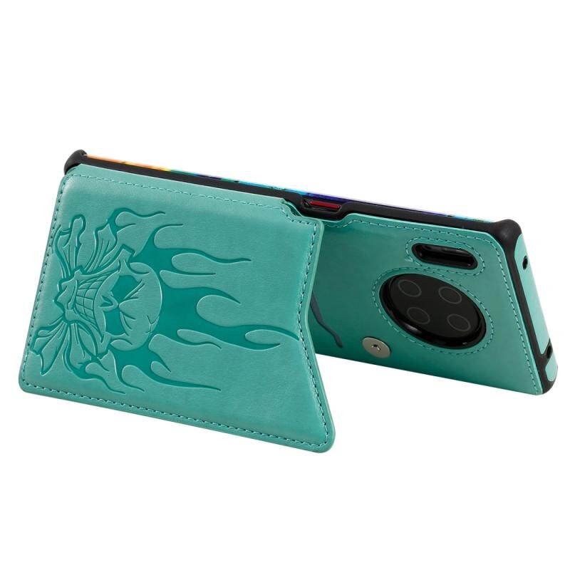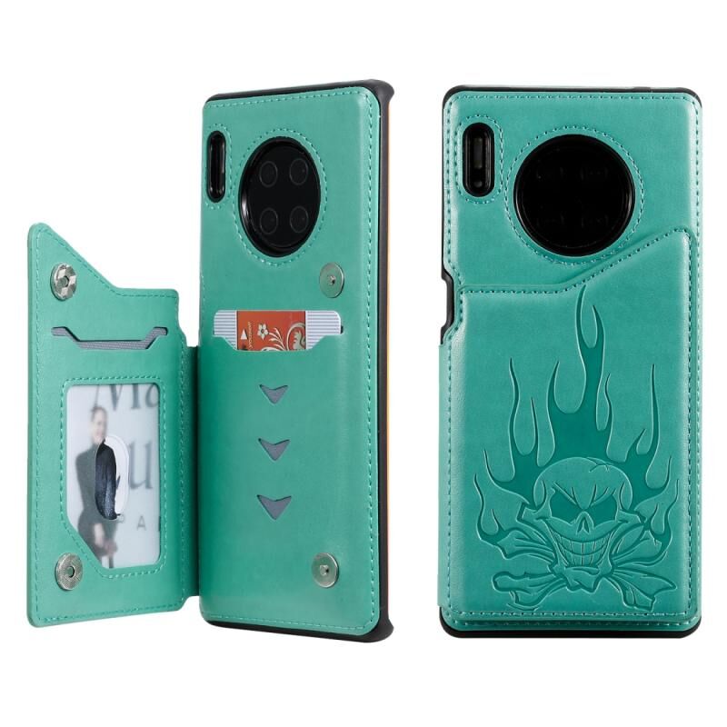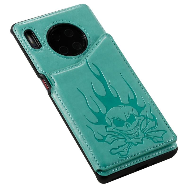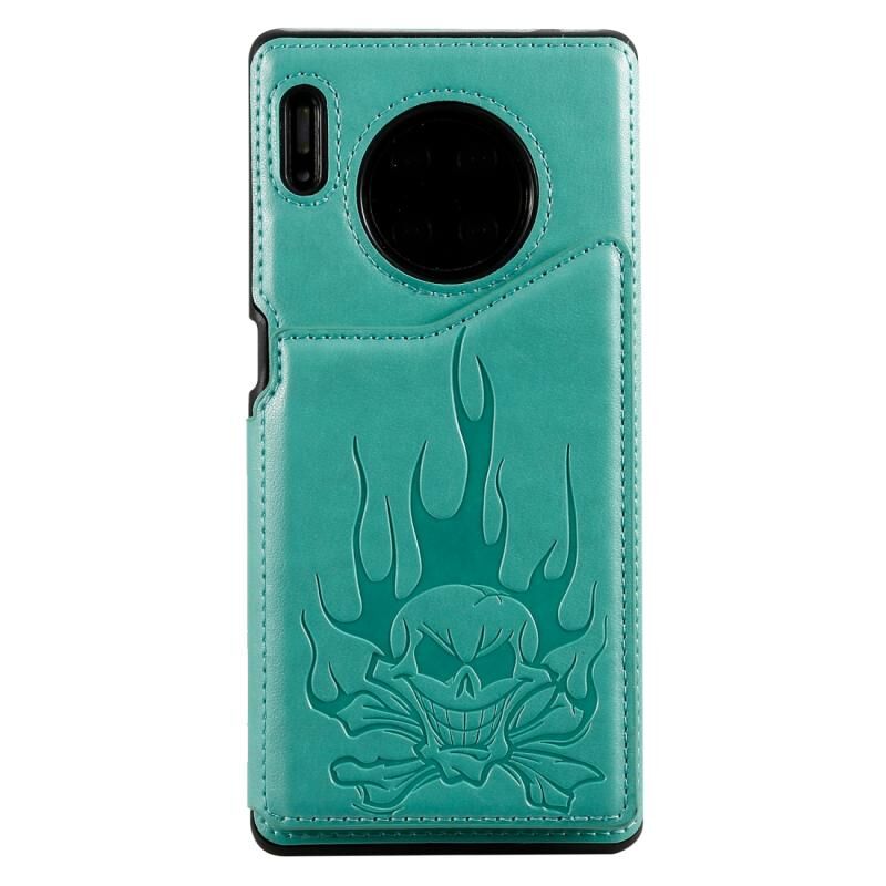 Θήκη προστασίας για Huawei Mate 30 Pro με ανάγλυφο σχέδιο κρανίου, αντικραδασμική, με βάση στήριξης & θήκες για κάρτες & πορτοφόλι (Πράσινο)